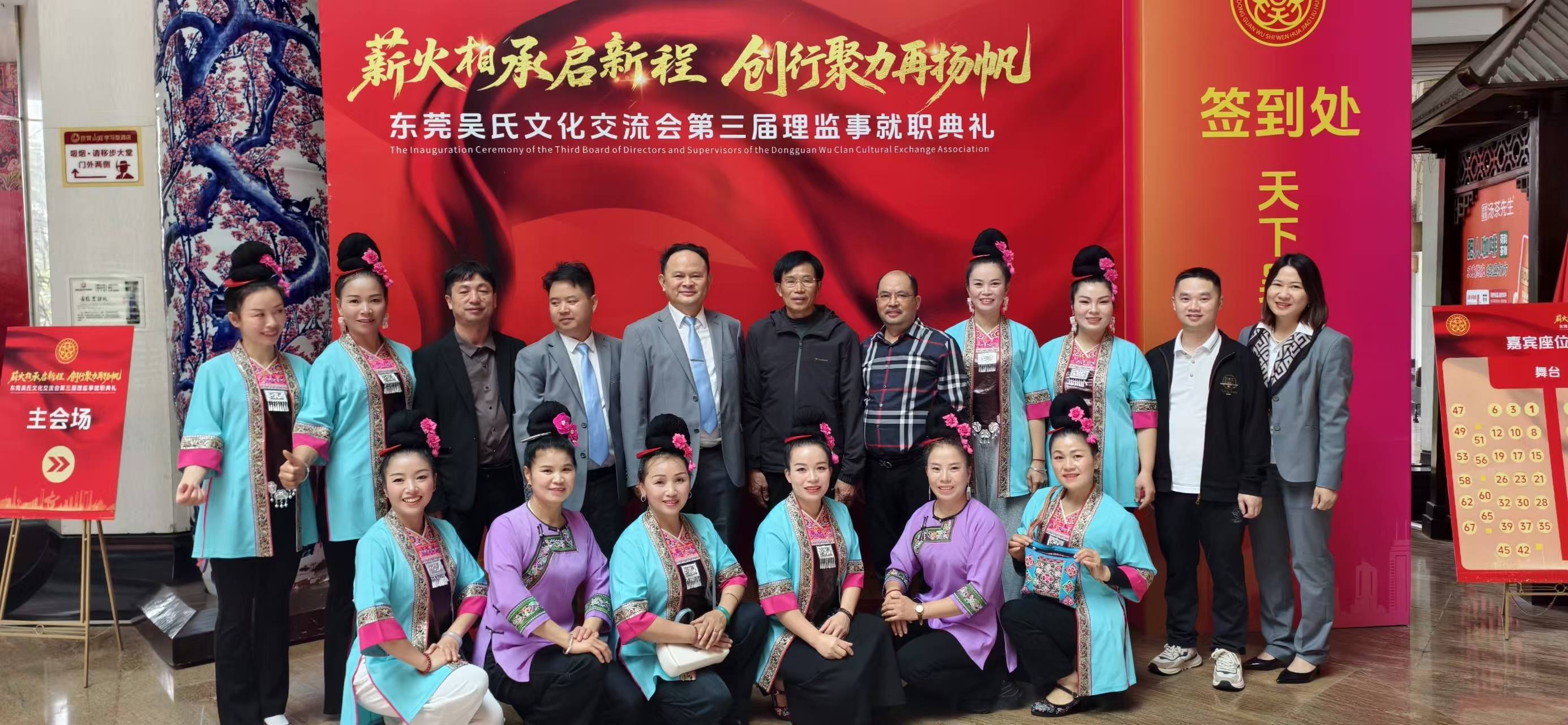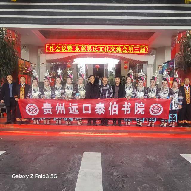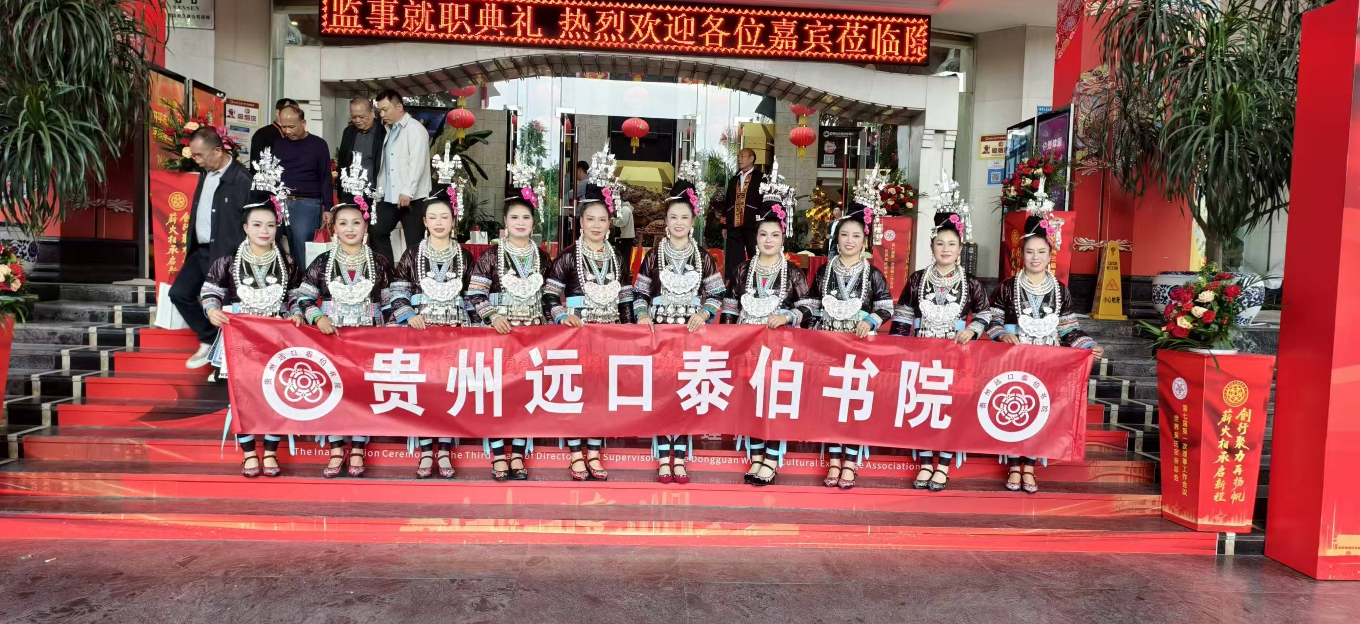 2025年12月10日,贵州泰伯文化研究会和贵州远口泰伯书院共同组织了二十余人的演艺团队赴东莞常平参加第三届莞吴会监理事就职典礼。首先是侗族姑娘们演唱的《侗歌声声唱给党》拉开了典礼活动的序幕,随后侗族姑娘和苗族姑娘们用动听的歌声演唱《侗族大歌》,《迎客歌》,《苗岭飞歌》唱想全场。