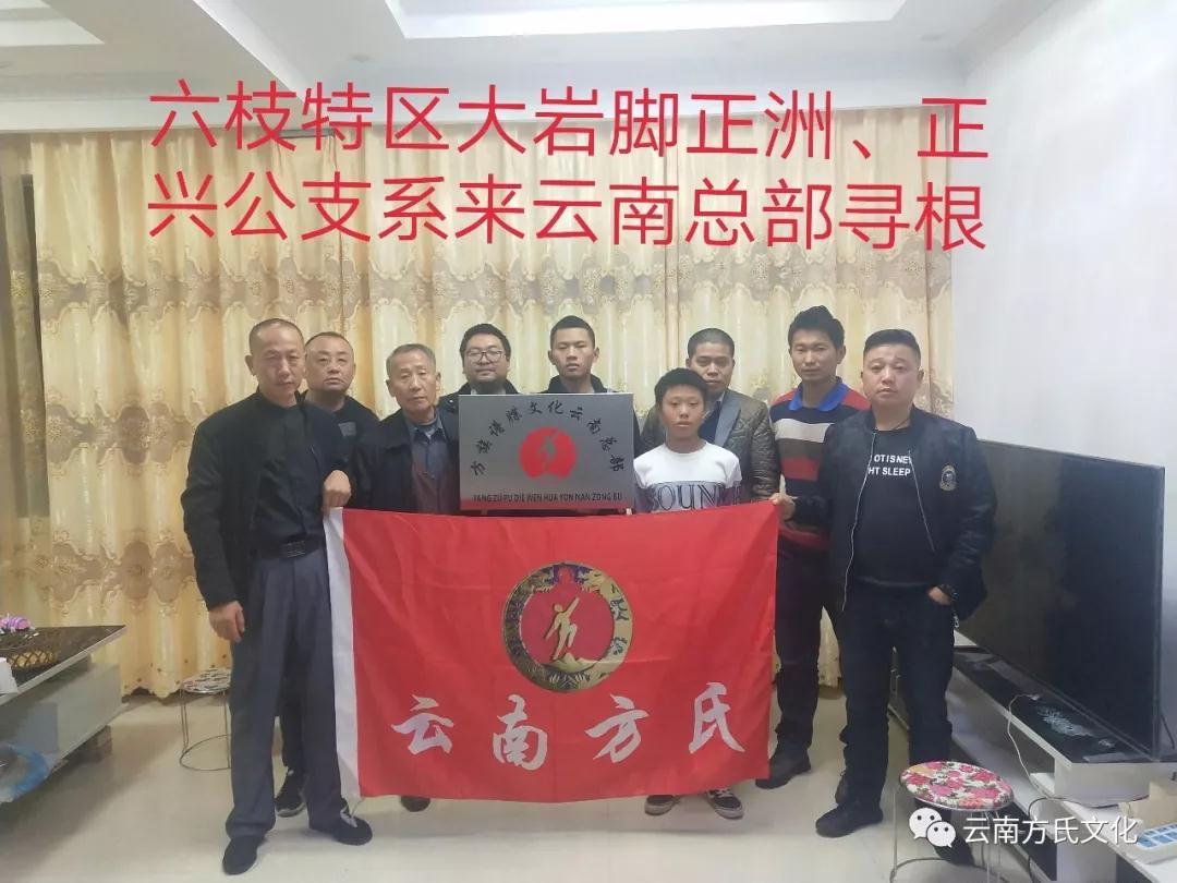 2019年11月16日,在方国平宗长的带领下,贵州省六枝特区大岩脚正洲 正兴公后裔一行七人分乘二辆小车,驶往方族谱牒文化云南总部寻根。总部方兴松、方玉旭、方红平三人接待了他们一行。