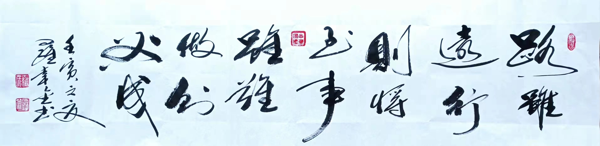 罗幸金,自幼酷爱书法,师从叶茂枝先生,遍临王羲之、颜真卿、苏轼、柳公权等古代名家碑帖,心摹手追,临池不辍,取其技法40余年。后又得到世界吉尼斯纪录微雕大师、资深书法家朱德祥老师的沾濡,并多次参加中书协、省书协和中国文联文艺志愿中心等机构举办的书法培训班接受正规技能提升培训,书艺再次得到提升和突破。坚持植根传统,扬弃继承,转化创新。重视传统而不拘泥于古法,力求创新却不崇尚怪异。取百家之长,集众家之妙,融古今国学,遵道法自然,最终形成自己独特的风格。尤善行草,兼之楷隶。行草,灵动飞扬,气势磅礴。笔势圆畅雄奇,笔法姿态横生。时如惊涛拍岸,狂吼怒啸;时如春雨潇潇,低吟轻诉。他笔下的书法,具有高难度的、不可替代的、以及自有的独立成熟而合理的技法。一笔一划无不蕴藏着他传统的笔墨功底、老练的掌控功力、广博的文化素养和高尚的艺术情操。