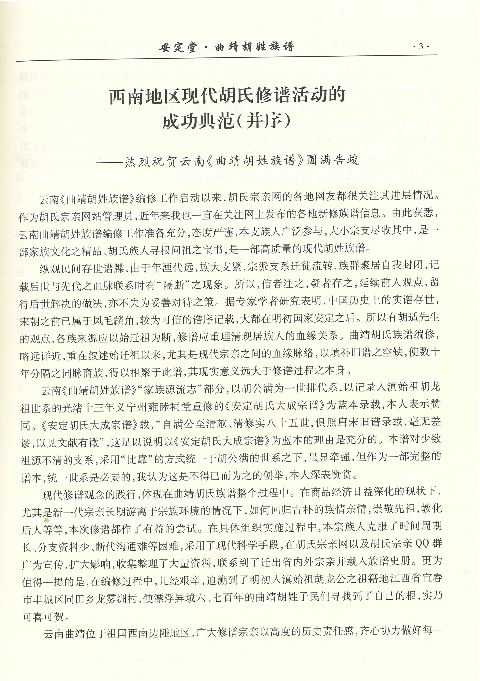 感谢曲靖胡春生先生向炎黄修谱网捐赠《曲靖胡姓族谱》