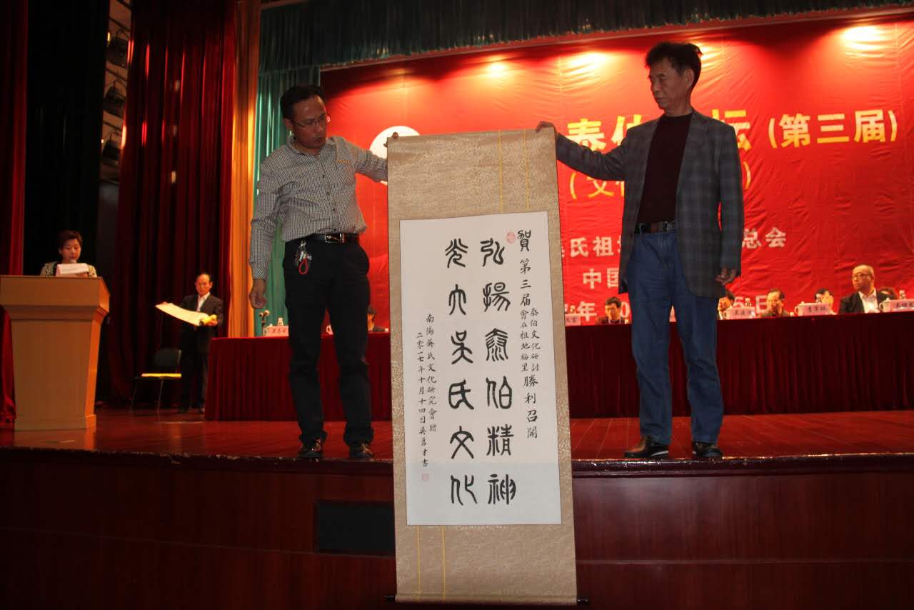 金秋十月,丹桂飘香,吴氏祖地无锡梅里迎来吴氏本年度<泰伯论坛开坛。中华吴氏总会吳文富主席率中华吴氏各地宗亲代表团参会。此次中华吴氏宗亲总会参会阵容强大,充分体现了中华吴氏宗亲重视泰伯论坛的一贯宗旨,体现了华厦吴氏大团结的一贯精神,是至德精神弘扬的很好体现与诠释,中华吴氏宗亲与海内外吴氏齐聚一堂共同研讨、交流了前二届及本届泰伯论坛的成果和历程,深入探讨未来泰伯论坛的发展方向、任务和使命,获得与会嘉宾高度赞同。会议期间中华吴氏总会还召开了2017第二届理事会成员会议,参加会议的有华吴副主席吴景晖、吴剑峰、吴学强、吴健生、吳美福、华吴高级顾问吳亚卿、祖地会长吴立兴、台湾宗长吴惠章、西班牙宗长吳靖年、云南宗长吴有龙、辽宁会长吴映辉、浙吳会吴松金、江西赣西会吴海滨、闽北会吳经乐、吳超诸、吳建鸿、温吴会吴伊尧、赣东北会吴教敏、黄山新吴会吴社清、安庆宗亲吳春节、徐州吴枭杰宗长等各地宗长到会,会议期间、各地会长、宗长畅所欲言、为华吴文化繁荣、经济拓展暨泰伯论坛发展的方向、为下一步中华吴氏工作布局等诸多事项各抒己见,充分发扬了民主会风,和谐的气氛弥漫和贯初会议始终,浓浓的血脉之情穿梭于方寸之间,宗亲们流连往返、依依不舍,会议开得如此简要又高效、如此热烈而融洽。会议认为 :中华吴氏始终秉承泰伯道德精神,以至德、至善、至美、至真、至信精神为宗旨、为团结、和谐、为弘扬吴文化而努力奋斗。