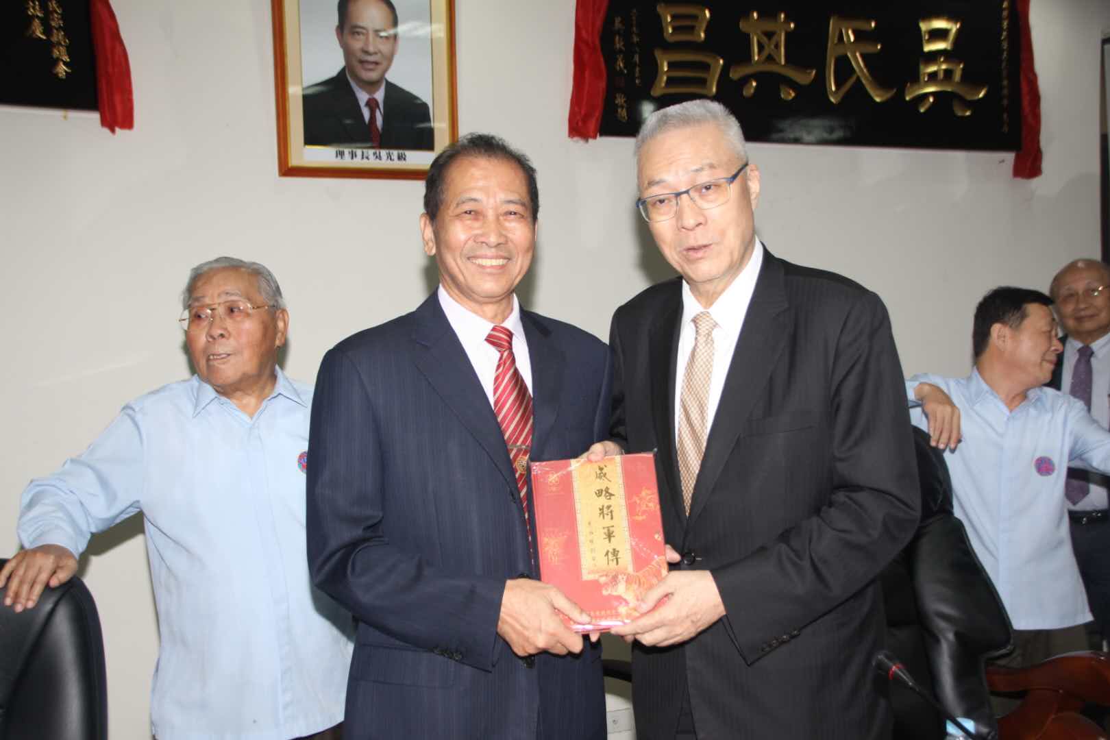 2017年11月26日下午,中国国民党主席吴敦义到菲律宾延陵吴氏宗亲总会会见世界吳氏总会副主席吴建民先生等宗亲赠‘’威略将军吴英传‘’书等,并拜祭吴氏先祖。