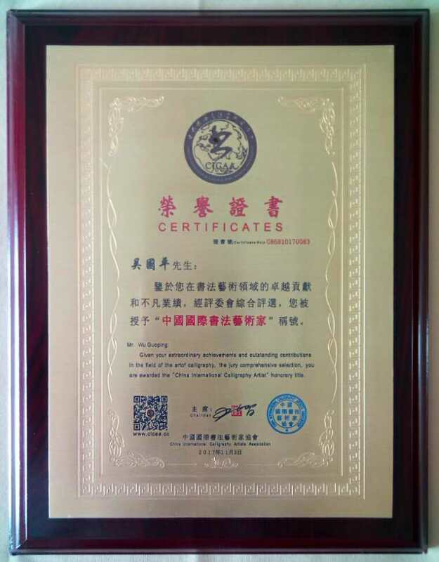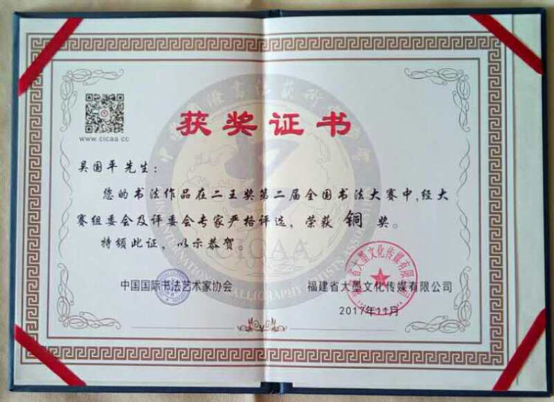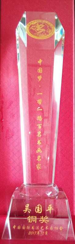 热烈祝贺吴国平荣获中国梦一带一路.百名书画铜奖,二王奖第二届中国书法大赛铜奖