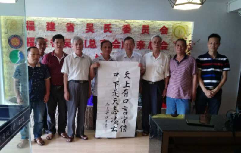 2018年7月7日,福建龙岩永定区吴氏宗亲会吴长煊一行专程到福州,拜访福建省吴氏委员会会长吴建华,名誉会长、福州大学教授、博士生导师吴汉充,副会长兼秘书长吴振宇一行在省总会亲切接见吴长煊会长,首先,吴建华会长代表福建省吴氏委员会,表示热烈欢迎吴长煊会长一行到省吴氏总会参观、指导工作以及到介绍福建省吴氏委员会开展工作情况、福建省吴氏总商会开展吴文化经济交流工作;其次,名誉会长吴汉光介绍到他到台湾参加第十届百姓论坛的感受及提出宝贵建议。省吴氏宗亲总会吴振宇副会长兼秘书长向永定吴氏宗亲会吴长煊会长了福建省吴氏委员会近年来开展的工作情况:①每年举办的海峡两岸吴文化节;②组团到台湾参加海峡百姓论坛;③组织福建省内吴氏宗亲赴无锡开展祭祖活动;吴振宇秘书长还介绍说,5月31日---6月7曰,组织省内多位吴氏宗亲代表赴台湾新门参加第十届海峡百姓论坛;在台湾开展同宗、同族、同根吴文化交流活动,在台期间还受到吴伯雄亲切接见。吴振宇副会长兼秘书长还向吴长煊会长详细介绍关于编辑出版《中华吴文化大典》、《福建姓氏志。吴氏》培训班后续工作以及筹备召开海峡两岸吴文化节五周年庆典等事宜。第五,吴长煊会长表示省吴会的工作开展扎实,吴文化研究理论透彻,是全省吴氏宗亲的家,也是我们各市、县、区吴在宗亲会学习的榜样,也欢迎省吴会的领导早日到永定吴氏宗亲指导工作,吴建华会长代表福建总会表示谢意。最后省吴氏宗亲总会吴建华会长一行与龙岩永定吴长煊会长一行在省总会办公室合影留念。