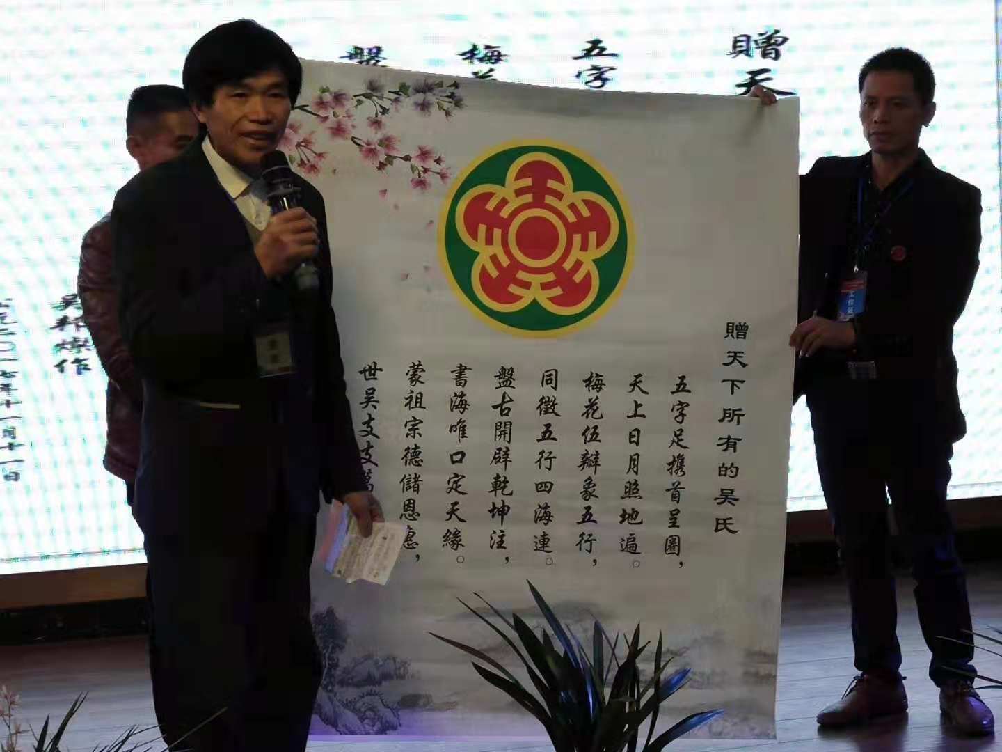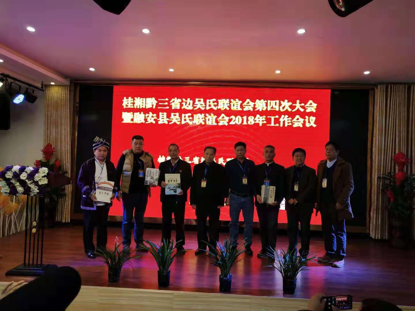 11月17日至18日,来自广西、湖南、贵州三省边县(市)的200余名吴氏宗亲齐聚广西省融安县,参加桂湘黔三省边吴氏经济文化发展联谊会第四次大会暨融安县吴氏联谊会。此举旨在打造广西、湖南、贵州三省边界吴氏宗亲交流平台,弘扬与发掘吴氏优质传统文化,共创美好家园,推动三省边界经济文化协同发展。贵州远囗吴氏总祠顾问吴国仕,远口吴氐总祠常务副会长吴述铨,远口吴氏总祠秘书长吴谋勇,远口吴氏总祠常务秘书长,黔东南至德文化研究会常务副会长吴培德,锦屏县吴氏宗亲会副会长兼秘书长吴礼宏,远口吴氏总祠会计吴和平,黔东南至德文化研究会副会长,锦屏县宗亲会副会长吴发富,黎平县宗亲会副会长吴邦灿等宗亲20佘人组成的贵州远口吴氏总祠,黔东南至德文化研究会,贵州天柱、黎平、锦屏各代表团参加了此次盛会。会上,桂湘黔三省边吴氏后裔吴氏联谊会会长吴善锦,从吴氏宗亲增进兄弟情谊,加强交流沟通、救灾帮困和联谊会理事会制度和队伍建设等方面,客观全面地作了工作总结,并指明了今后的发展方向。会上吴礼宏受远口吴氏总祠代理会长吴世平,执行会长吴位清,常务副会长吴经周的委托,汇报了远口总祠一年来取得的成果和以后总祠的工作计划。同时受贵州至德文化研究会会长吴进华和秘书长吴鸿的委托在会上宣读贵州至德文化研究会为此事盛会发来的贺信。在会议现场吴礼宏代表远口吴氏总祠,黔东南至德文化研究会及天柱赠送融安宗亲会一幅由中央民族大学教授、法学泰斗、书法家吴宗金亲笔书写的墨宝。会议还宣布了桂湘黔三省边理事会人事变动情况,并颁发了证书,10余位吴氏后裔代表先后作了发言。据了解,桂湘黔三省边区是少数民族聚居区,苗族、侗族、瑶族占绝大多数,其地大物博、资源丰富,由于地处偏僻,交通不便导致三省边区文化落后,经济薄弱,发展缓慢,为了促进三省边区经济社会协调发展,三年来,吴氏氏族不断加强外界学习,在情谊、文化、经济发展等方面取得了较好的成绩。不断依靠党政引领,发扬至德精神,共创吴氏经济文化发展联谊平台,紧密联系,加强交流,互通信息,团结协作,一心向上、向善,积极为当地经济会经、文化协调发展做出了有意义的贡献。 广西柳州市、贵港市、市阳角山、鹿寨、融水、三江、融安,湖南通道、会同,贵州天柱、黎平、锦平、茅台赤水河流域与江及柳州等地的吴氏联谊会宗亲参加会议。参加会议人员有:广西吴氏联谊会的吴素文二姐,江西省吴文化研究会副会长吴启文,广西柳州吴氏联谊会会长吴耀科,桂湘黔三省边会长,广西三江县执行会长吴善锦,桂湘黔三省边顾问,原会长吴启航,桂湘黔三省边秘书长吴爱书,南宁市民族歌舞艺术学校校长、广西艺术高考研究院副院长吴仕前,广西贵港市吴氏联谊会会长吴明春,贵州远口吴氏总祠常务副会长吴礼平,湖南会同吴氏宗亲联谊会会长吴传海,执行会长吴奇,贵州赤水河流域吴氏宗亲联谊会副秘书长,贵州茅台醉泉(集团)源亿酒业有限公司董事长吴胜利,副总吴光明,湖南通道县吴氏联谊会会长吴国金,副会长吴宏跃,秘书长吴朝辉,湖南红艳兰花园艺有限公司董事长吴宏燕,融安县吴氏联谊会会长吴永谋,执行会长吴定辉、吴国明、秘书长吴晖等等。