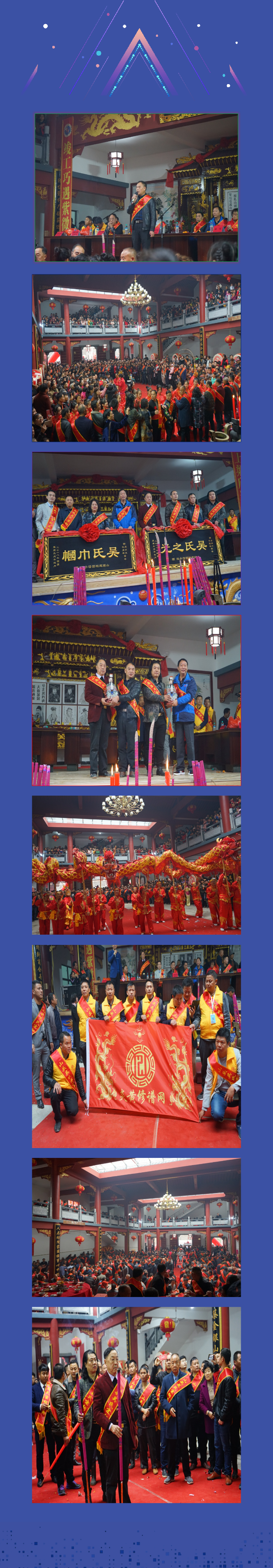 回首遂昌吴文化所究会过去的一年,我们取得的每一点成绩都凝聚着各位宗亲抵砺前行的辛勤汗水,都离不开你们不忘初心的担当与支持,当然,也离不开我们上级组织——浙江省吴文化所究会的关心与指导!2018年上半年,我们先自行筹划成立了遂昌吴文化所究会,紧接着,在吴达赞宗长的努力沟通下,得到了遂昌文广局的大力支持,取得了民政局审批许可,现已是民间合法的社会团体。在遂昌县委组织部统一指导下,又建立了全县第一个民间社会团体——遂昌吴文化研究会党支部。从此,遂昌吴文化研究会以党的政策和国家法律法规为核心开展了一系列工作。我们召开了遂昌吴氏宗亲第二次代表会;我们的代表参加了省吴会举办的各项活动;我们还动员宗亲投入了宗谱续修、宗祠修建等事宜。2018年年底,在吴育强宗长的慷慨资助下,我们在湖山召开了遂昌吴文化研究会座谈会,总结了一年来的工作,并布置了2019年的有关事项。