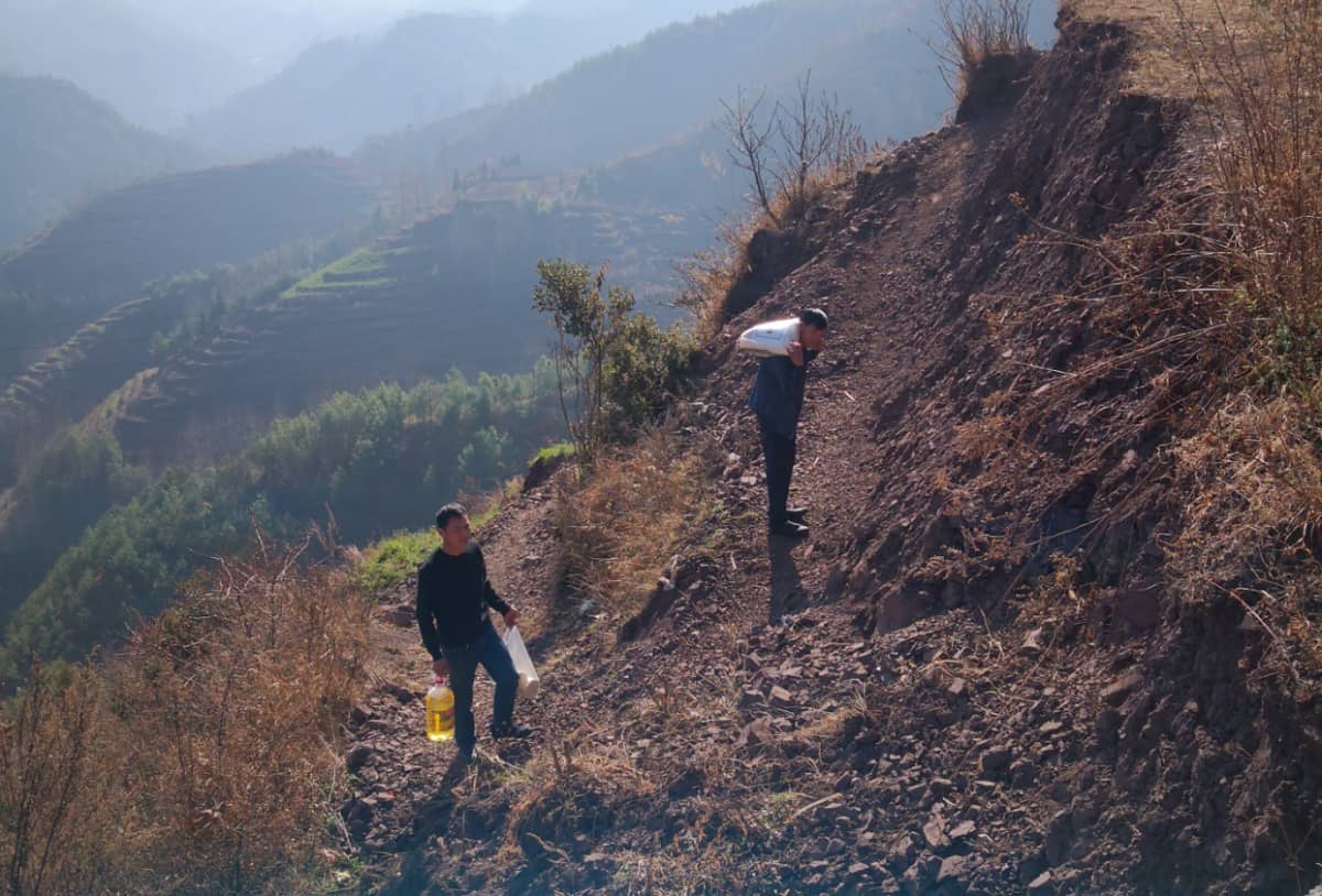此次活动中,特别是2月1日,爱心团队从六盘水市区行车一个半小时,在乌蒙山区梅花山山麓翻山越岭,因为道路中断,又徒步两个多小时,到达威宁县龙场镇颜珠块村吴家院子慰问吴洪宝一家四口,吴洪宝一家四口人全是重度残疾人,吴洪宝是哑巴、精神病人,吴桥书是精神病人、吴幺桃是重度弱智、尹春凤是盲人。吴洪宝一直未婚,哥哥嫂嫂年轻时离开人世丢下两个残疾孩子吴桥书、吴幺桃,他在白天几乎都是在山上打柴,用于一家人的生活取暖,自己的主要生活来源都是在土地里捡可食用的马铃薯、萝卜、野菜等生活;吴桥书常年卷缩于家中或室外的玉米草堆,生活不能自理;弱智的吴幺桃除了靠在附近下苦力打工挣钱养活一家人外,还要照顾叔叔、哥哥和双目失明的妻子。政府已经为该户家庭修建房屋,现缺乏电冰箱、电饭锅等炊具和生活、取暖用煤。