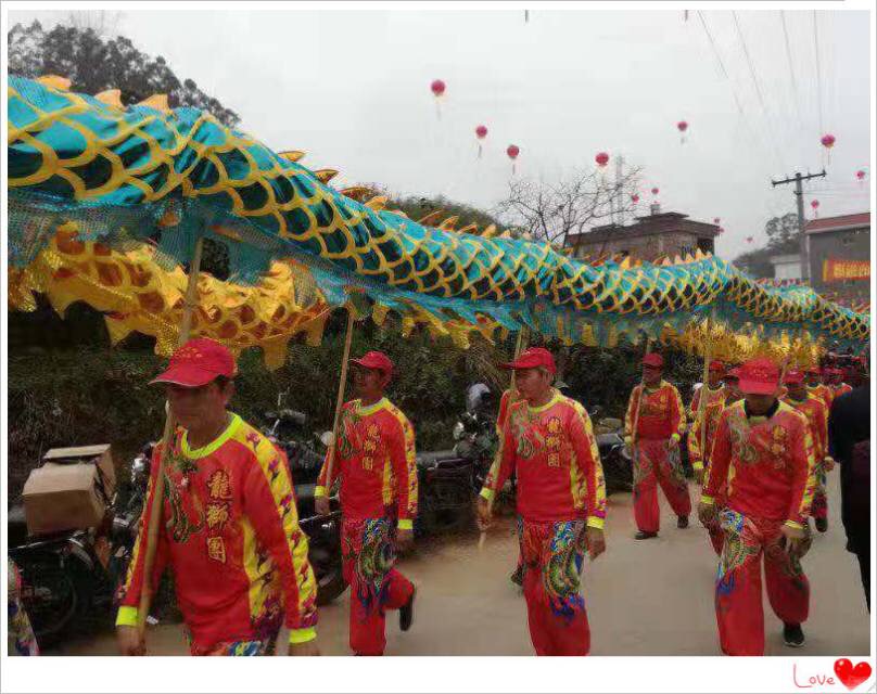 上午 9点龙狮队在祖祠前舞动起来,场面十分红火,人山人海,热闹纷呈。