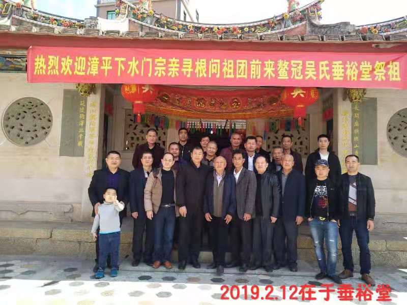 在今年正月初六厦门吴氏家庙垂裕堂理事会寻根团带着族谱前往漳平下水门吴氏世馨堂对上族谱,垂裕堂第九世吴曰祥公分支到漳平下水门安居乐业,在祖先有灵让家人团圆,受到漳平宗亲热情接待,在晚宴中三地宗亲互相交流,经下水门理事会介绍在年底宗祠完工,我们《同根同源》一家人。