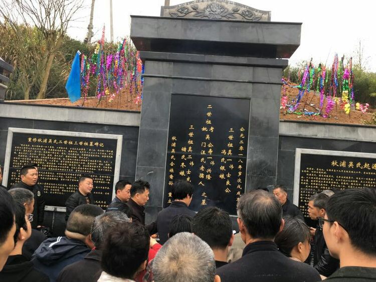 3月28日上午,在贵池殷汇南街便开始集结来至池州各乡镇及外县、市和江北吴氏家族的车辆。今天28日,是秋浦吴氏大家族统一祭拜祖先二世祖、三世祖和祭拜贵池乌石村吴氏大祠堂的清明日。由于场面浩大,人员车辆众多,秋浦吴氏宗亲会相关人员本月20日便详细规划行程路线并做了充足的突发预案,全程调控指挥由牛头山镇及秋浦吴氏宗亲会会长吴光荣先生主导指挥,确保行车和行人安全,做到场面宏大,规范行驶,不影响社会交通。9:10分所有车辆按先前编排号有序依次驶入石台县梓溪祭拜二世祖和三世陵墓。祭拜活动以绿色、环保、健康为主体,决不给当地村民带来污染源,本着从简隆重,团结热闹,体现社会主义新风尚。
