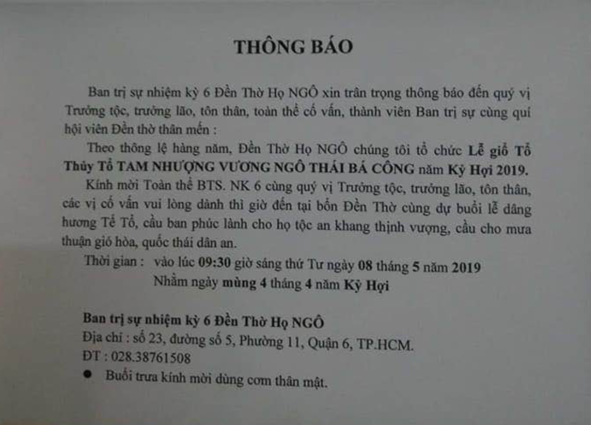 越南胡志明市延陵吴氏第六届理监事会致函通知