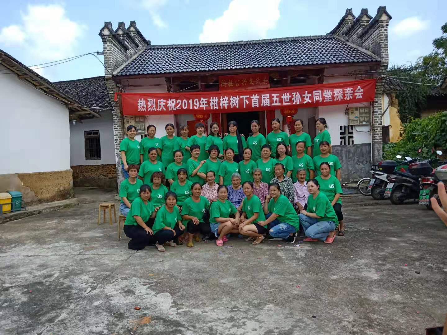 酒席结束后,参加首届五世同堂探亲会的外嫁女一行33人,在祠堂前合影留念,留下美好的回忆!并期待下届的聚会。