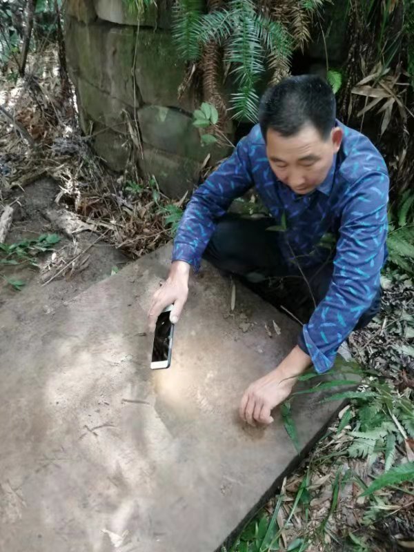 10月5日,良金房吴氏宗亲吴定奎、吴起超、吴环蜀、吴定才、吴必成、吴必华、吴定泽、吴江燕八人一行到江安老翁查看一块已经到了多少年的墓碑,大家在吴定文宗亲的带领下,找到了墓碑,由于墓碑倒的时候把碑文盖在底部,宗亲们就把碑翻过来,看到字迹还在清楚,碑文记载内蓉如下图