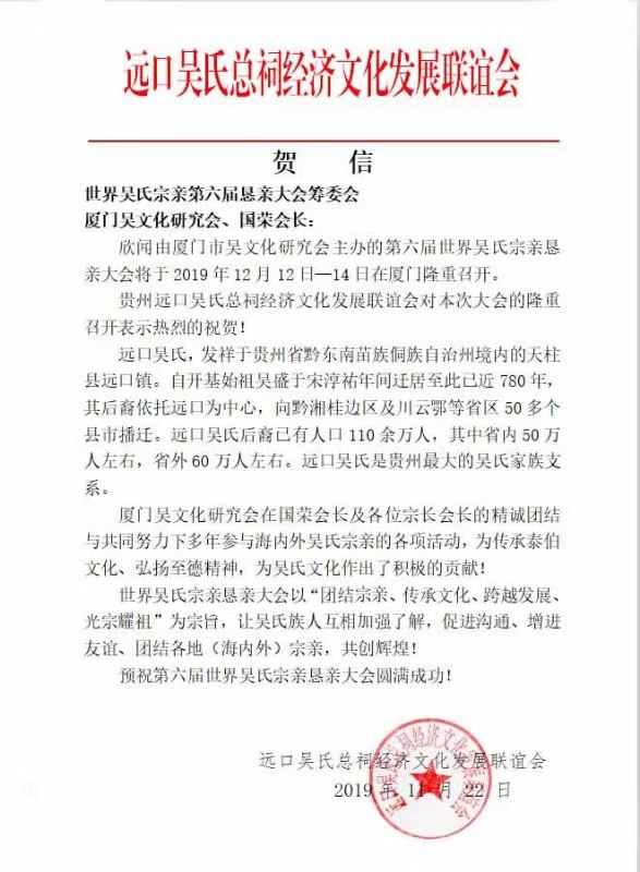世界吴氏宗亲第六届恳亲大会筹委会