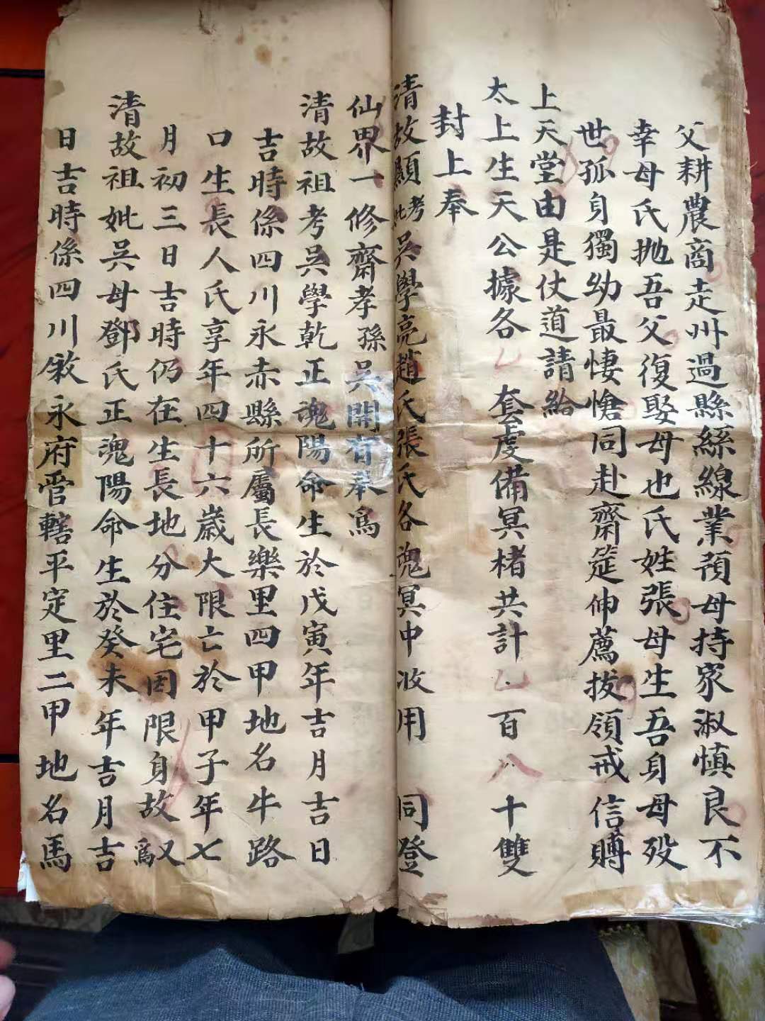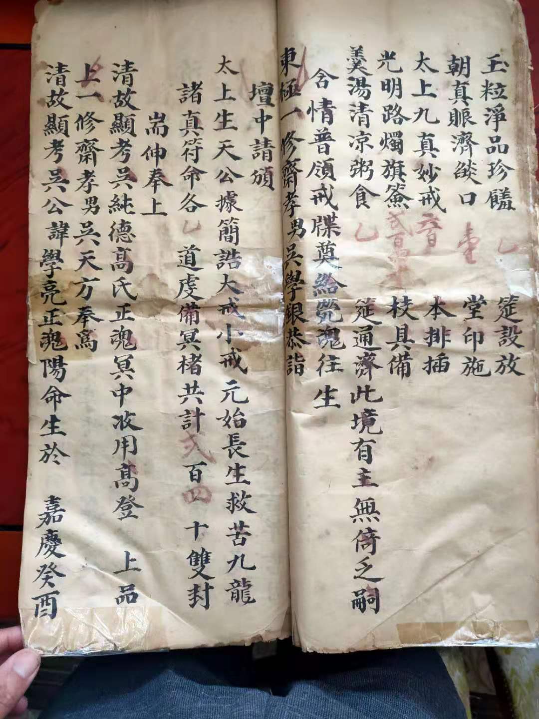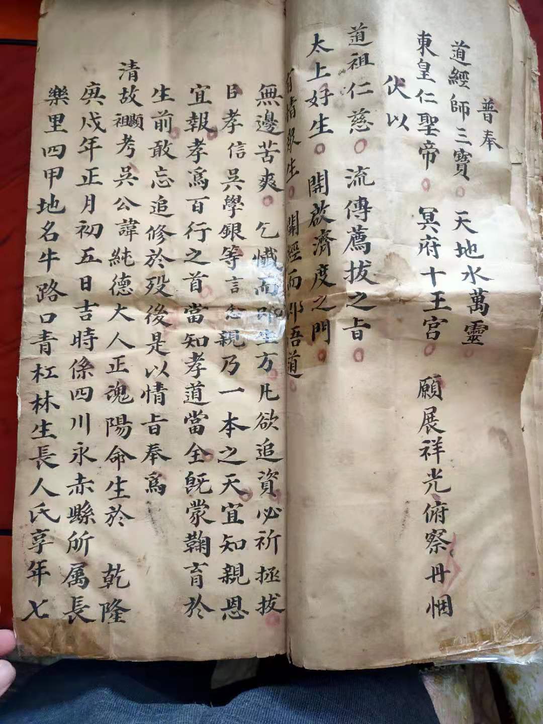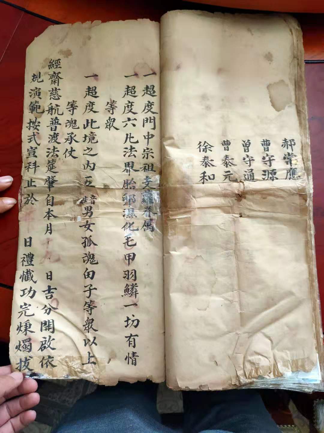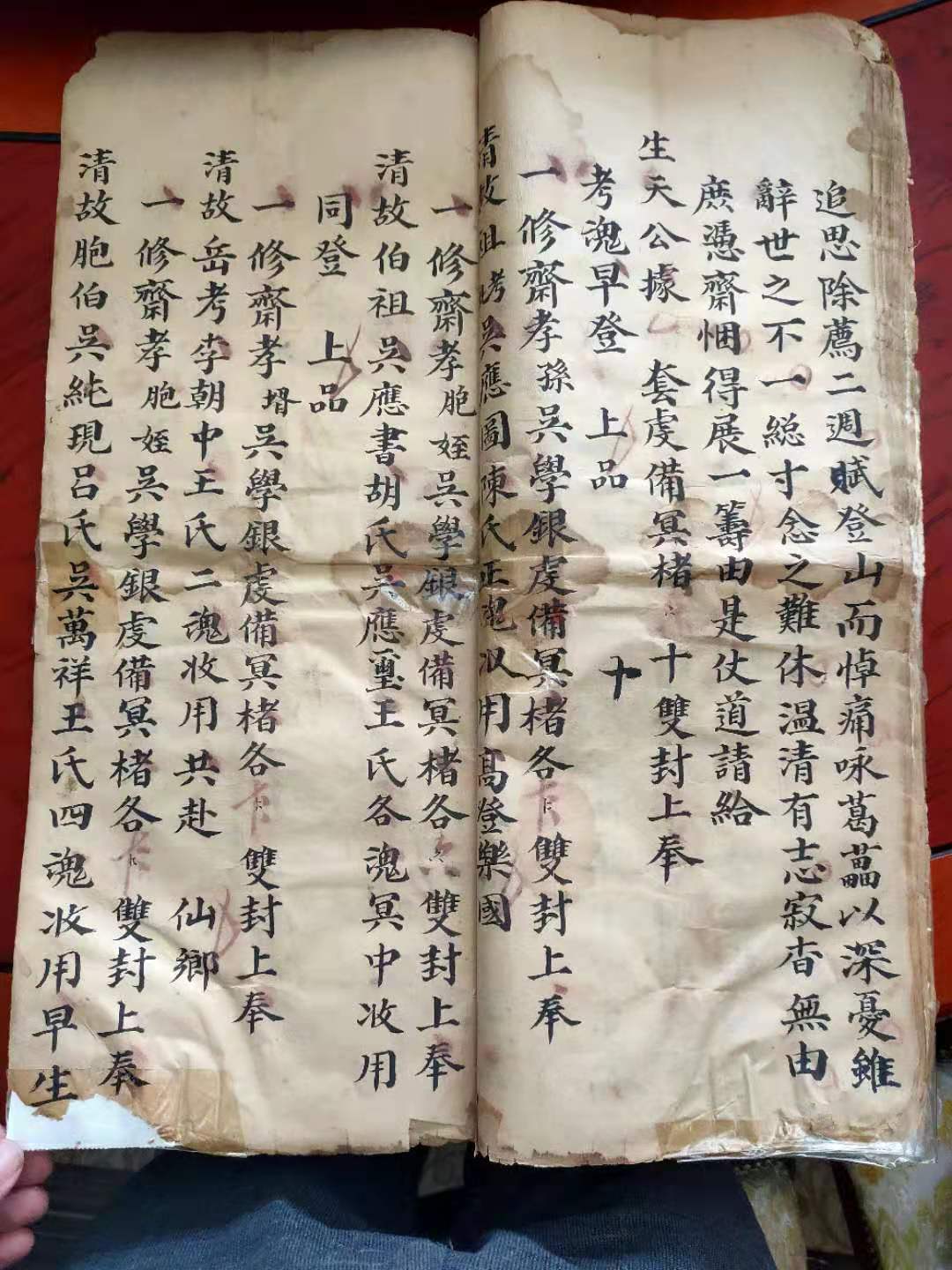 会议还邀请了金沙未找到根源的家亲吴荣方、吴荣江、吴华久、吴安龙作为列席代表,吴荣方把一百多年的经丹簿带到会场,大家打开一看,完全跟吴伯臣家族吻合,吴荣方自己说他是文字辈,父亲吴运科,爷爷吴开明,老祖吴天元,经丹簿记载他家属于牛路口所迁出。列席代表吴华久、吴安龙等也把自家世代流传下来的资料带到会场,大家一起研讨,暂未查出世系上源。