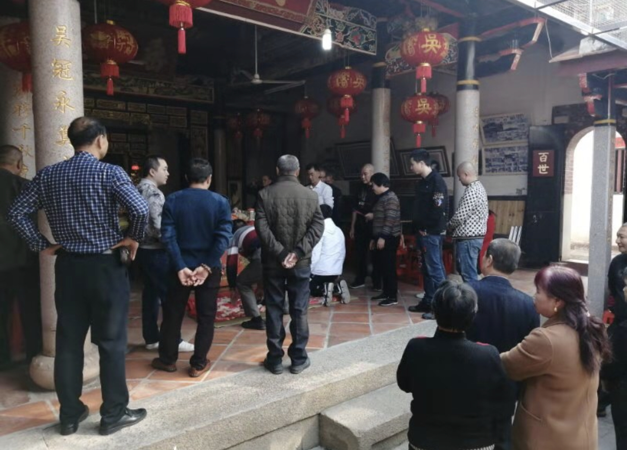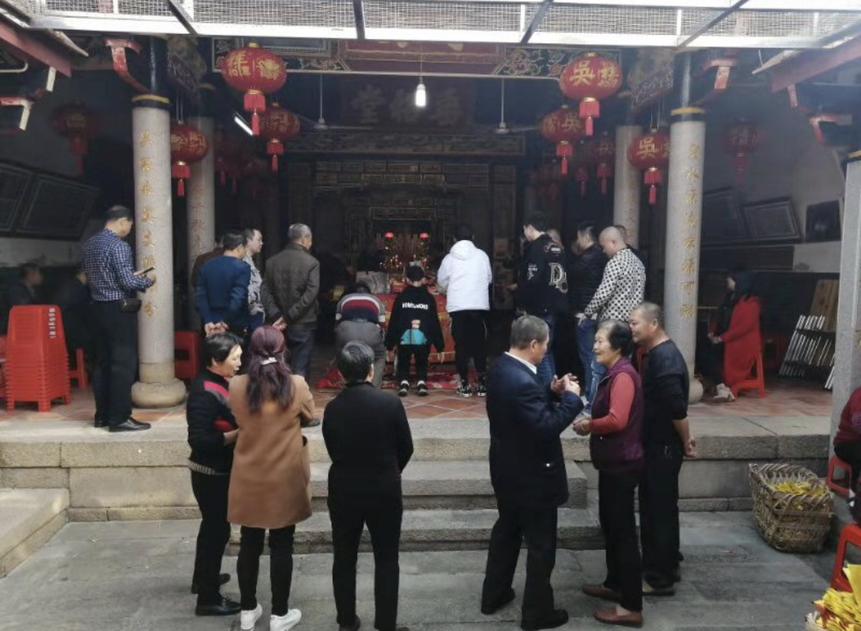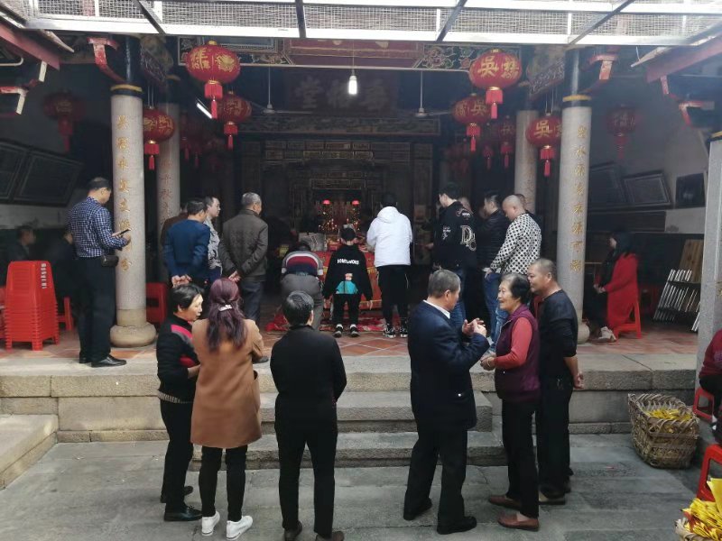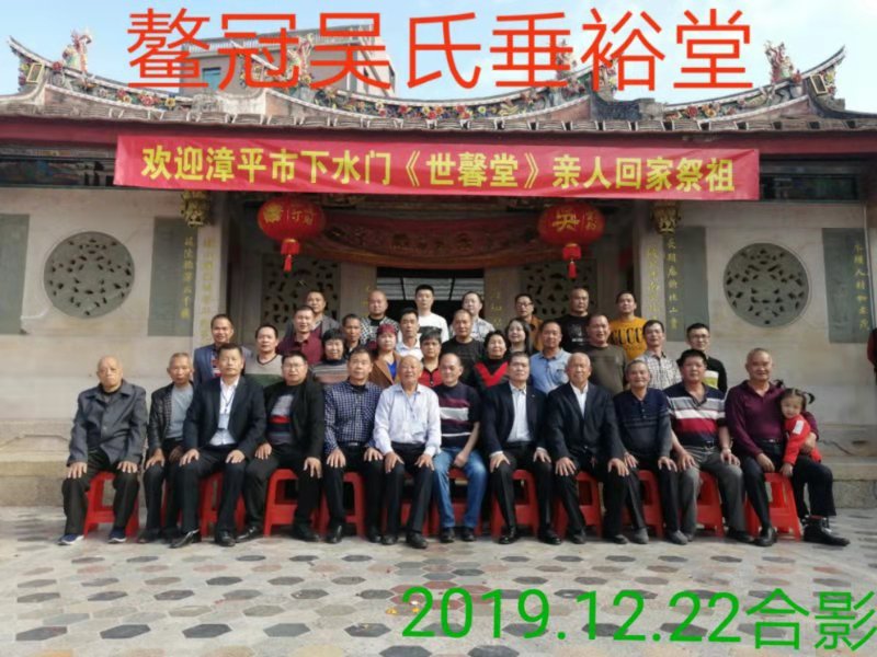 厦门鳌冠吴氏家庙垂裕堂理事会在于2019年12月22日(农历十一月二十七日)上午9点正举行冬至祭祖活动仪式,鳌冠吴氏垂裕堂的第八世祖“日祥公”迁龙岩市漳平下水门吴氏后裔回祖地冬至祭祖活动,炮声隆响中隆重举行,鳌冠吴氏垂裕堂迁龙岩市漳平下水门吴氏三十位家人吴新强、吴鸿权、吴连胜、陈淑芳、吴建南、郑凤莲、吴建芬、吴连贵、李幼玉、吴健杰、吴秋生、吴秋贵、林金女、吴新菜、吴伟杰丶吴日明、吴连升、吴新荣、吴连秋、吴连辉、苏惠玲、吴木前、吴克龙、吴建莹、吴鹏鑫、吴克培、吴连庆、吴新旗、吴克斌、吴天明、吴建平、吴社清、吴新强、吴鸿权、吴连胜、素芳、吴建南、阿莲、吴建芬、吴连贵、幼玉、吴健杰、吴秋生、吴秋贵、阿女、吴新菜、吴伟杰丶吴日明、吴连升、吴新荣、参加冬至祭祖活动,炎黄修谱网安徽站长吴社清出席活动现场,吴红兵、吴龙风、吴建平等人参加。