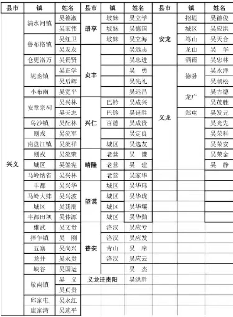 广大黔西南吴氏宗亲: