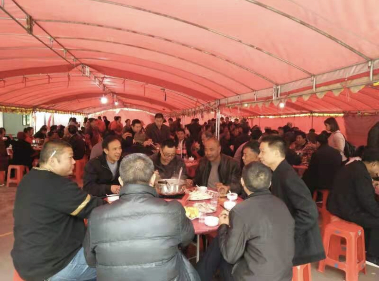 今天祠堂庆典来自广东各地的吴氏有湛江、茂名、佛山、广州、深圳、清远等地还有邻县韶关一千多人前来祝贺。