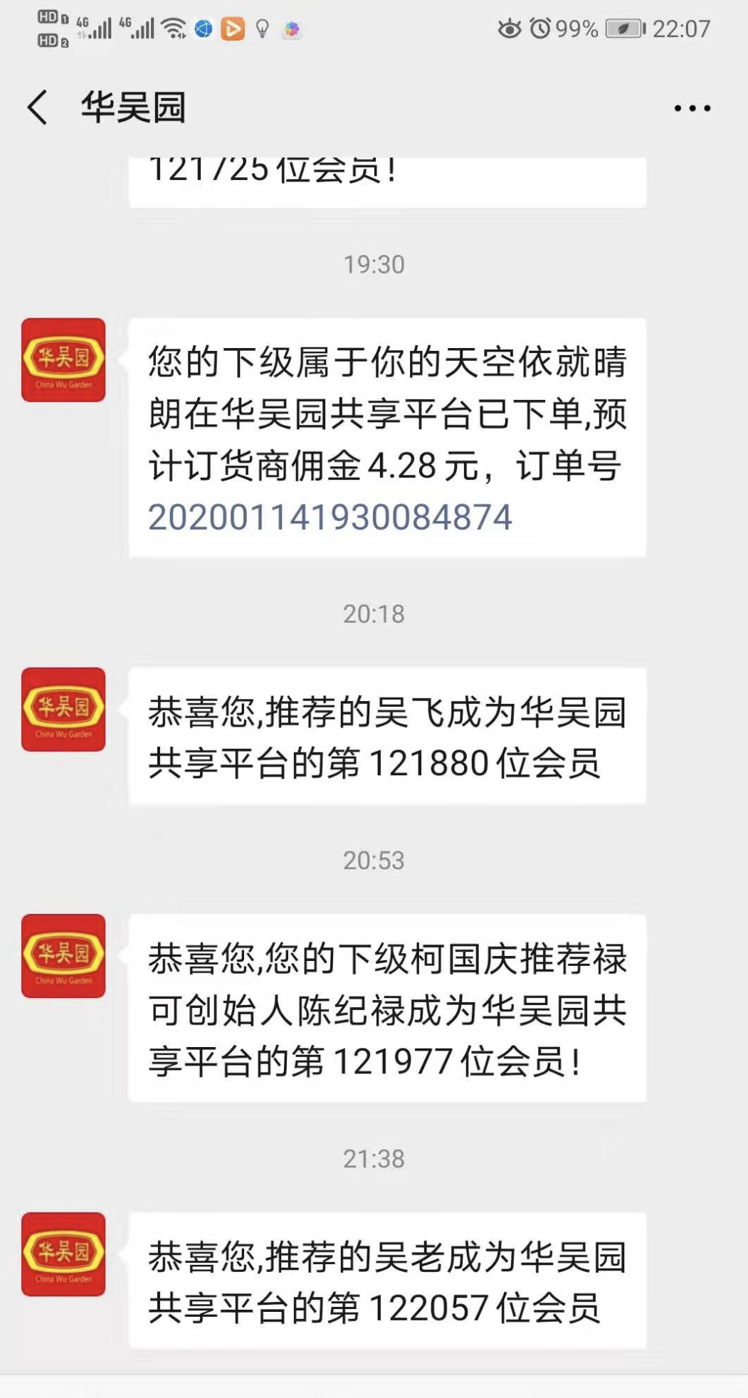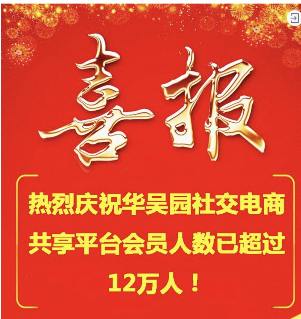 热烈庆祝华吴园社交电商共享平台会员人数至今已超过十二万人!