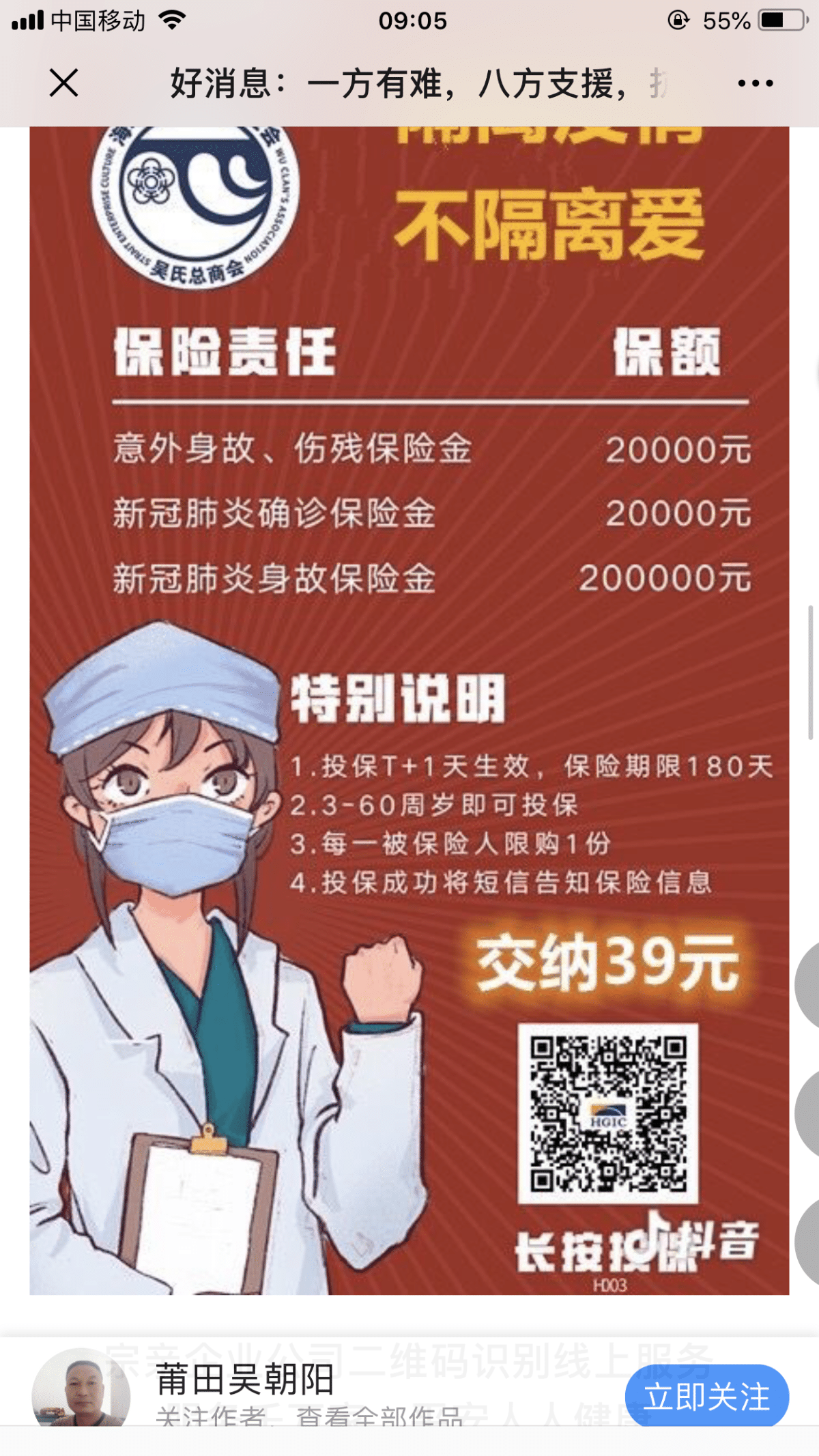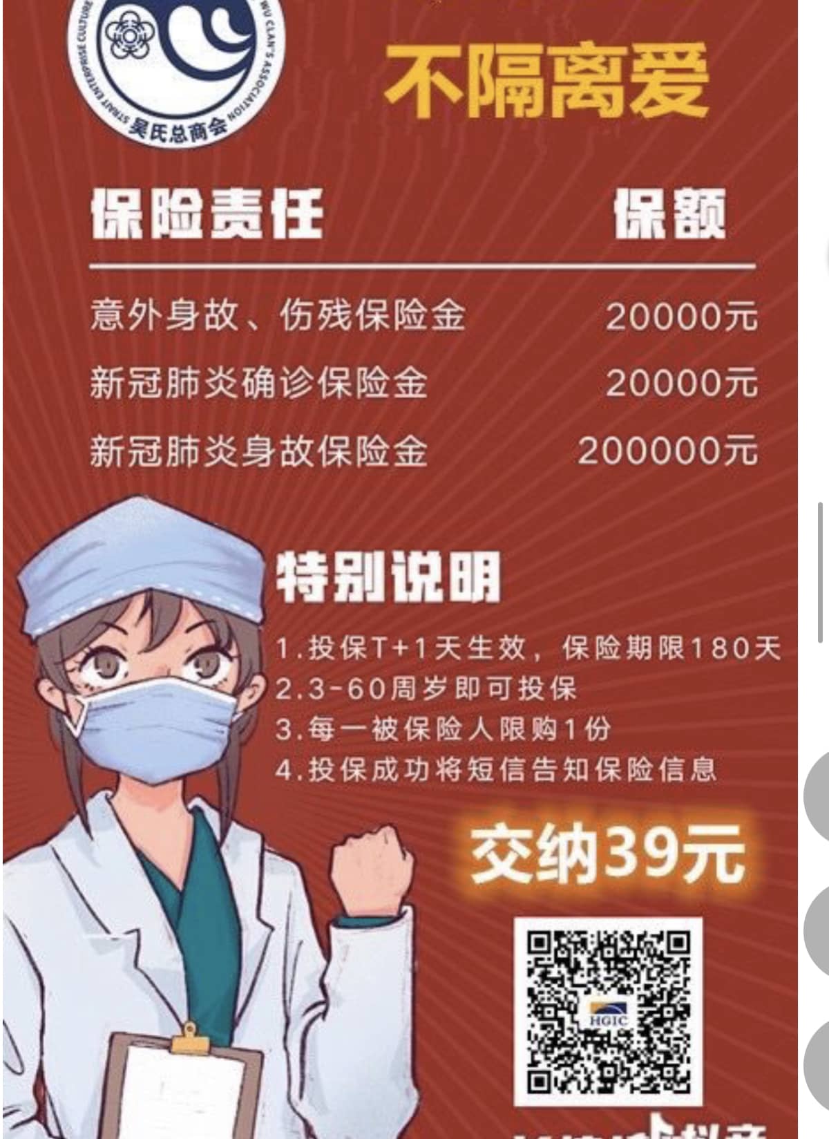 好消息:一方有难,八方支援,抗击疫情,海吴总会联合省海峡保险,共创吴氏平安健康服务宗亲企业。