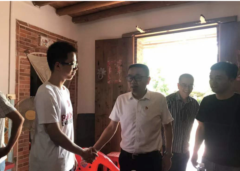 带着党和政府的深切关怀,8月26日上午,福建省仙游县度尾镇党委书记官金华同志一行看望慰问在今年高考中取得优异成绩的度尾学子吴宇森。对他及其家人表示热烈的祝贺,勉励他坚定理想信念,树立远大抱负,不辜负家人及家乡人民的殷切希望,在大学里继续努力学习,成为祖国的栋梁之才。并送来慰问金10000元以及镇党委和政府对莘莘学子的祝福和厚望。圣山村书记吴寿攀陪同参加慰问。