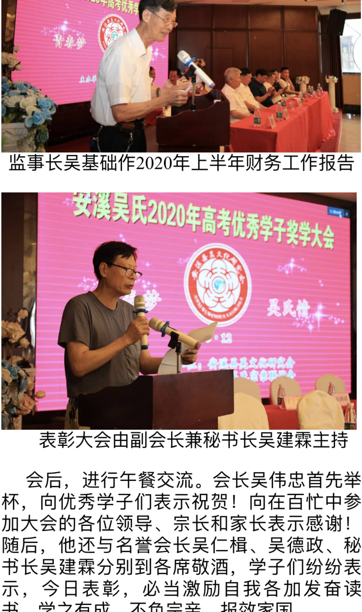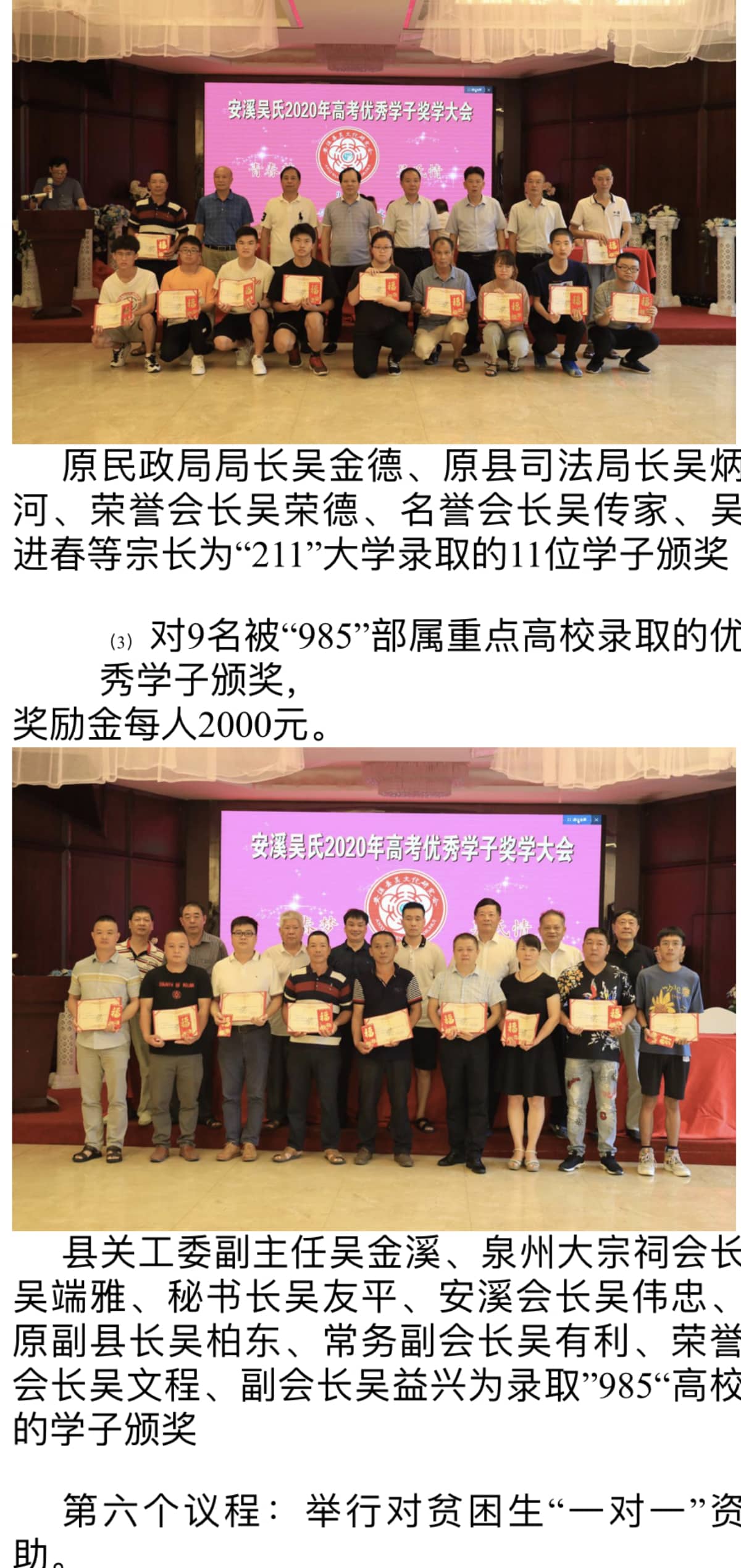安溪吴氏举行2020年高考优秀学子表彰大会