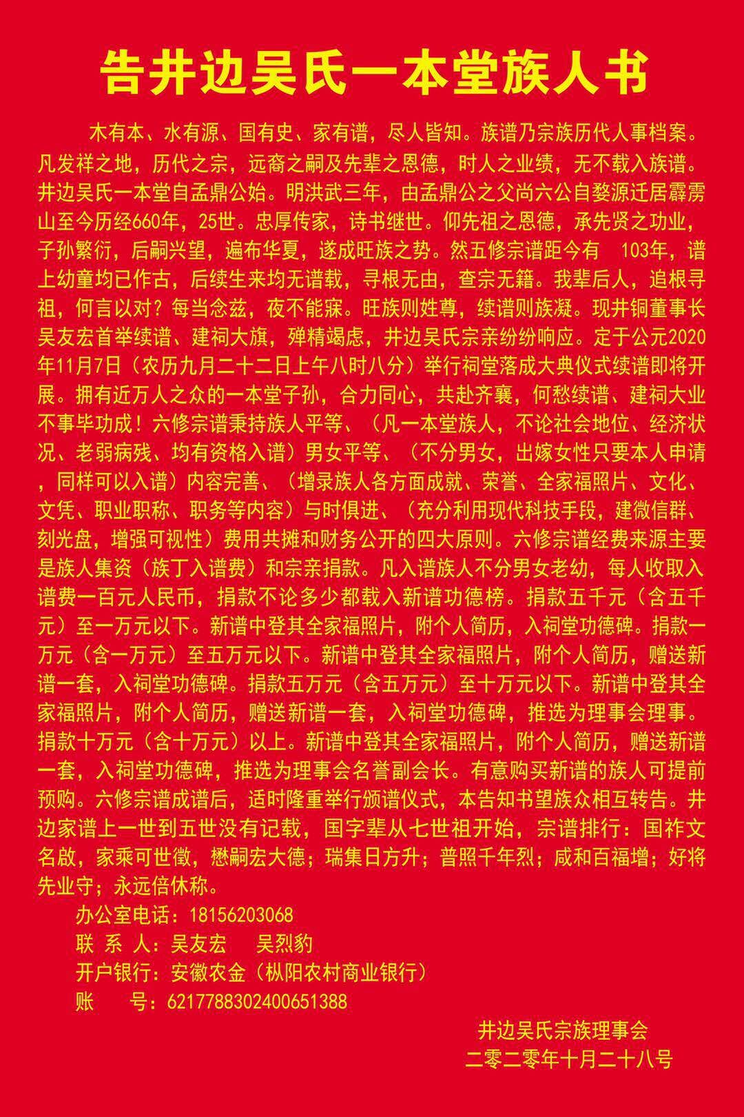 告井边吴氏一本堂族人书