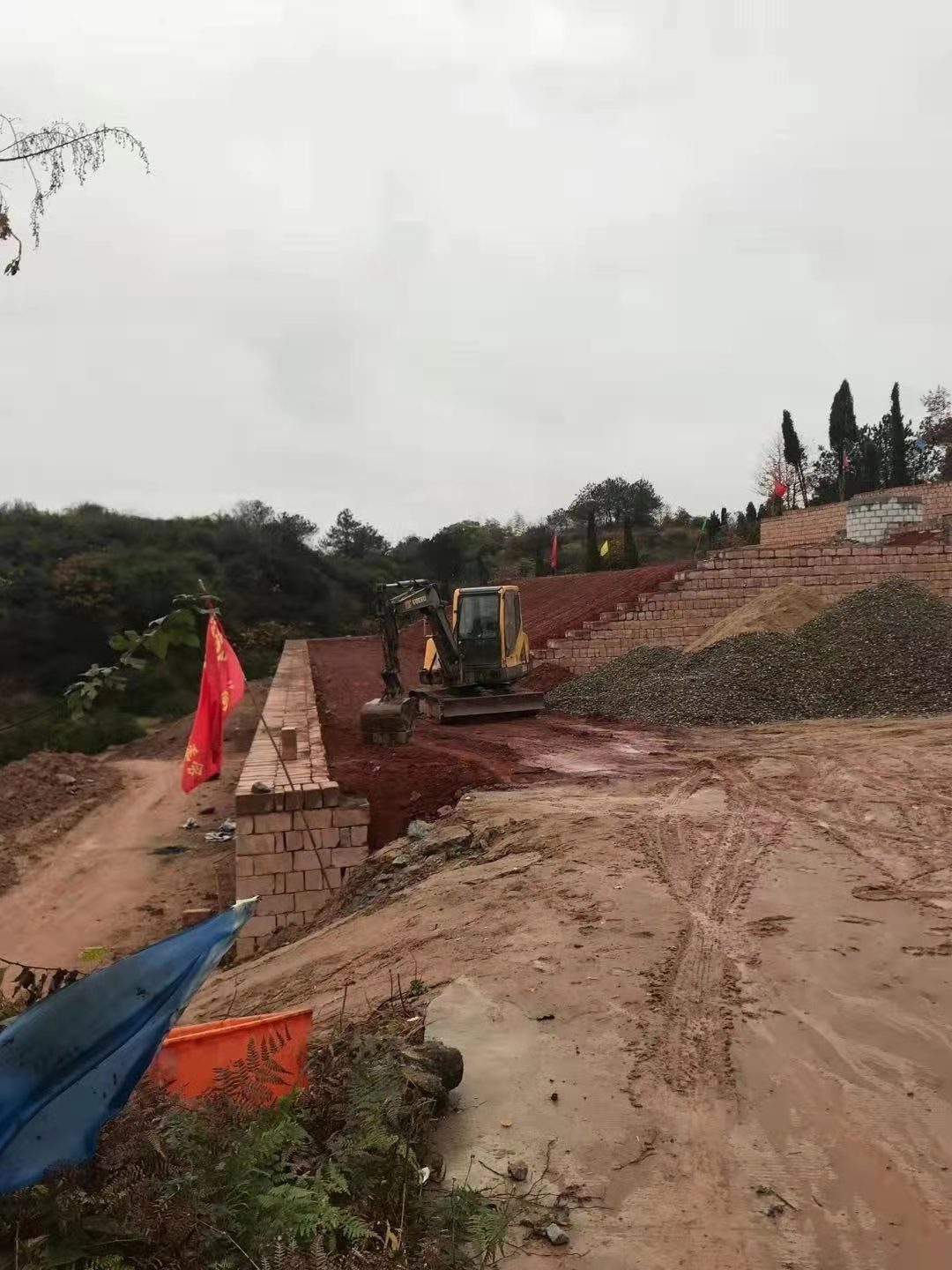 14日上午,考察组一行,在伟民会长、先春主任等宗亲的培同下,到九联青铜山宣公墓施工现场实地考察。重修宣公墓一期工程(墓区)量很大,经过近两个月紧张有序的施工,目前土方工程和砌筑工程已基本完成,宣公及孟氏夫人墓已按设计要求圈顶,墓碑、墓志铭冬至前全部到位,确保冬至吉时立碑。环墓路道及墓前场地,道路的水泥基础及下步花冈岩铺面,台阶、绿化工程也正加紧进行。考察团一行经过实地考察,对目前的施工质量和工程效果比较满意,对祖地宗亲的付出表示感谢。在现场,大家还对归宗碑位置大体作了规划,要求对孝贤碑以及宣公文化碑林的规划设计,石材选料及碑文内容等项工作也应尽快落实。考察结束后,大家还来到了宣公祠共祭了宣公神像并合影留念。下午,考察组一行还应邀参访了广昌吴氏宗亲会,受到了当地宗亲们的盛情款待。