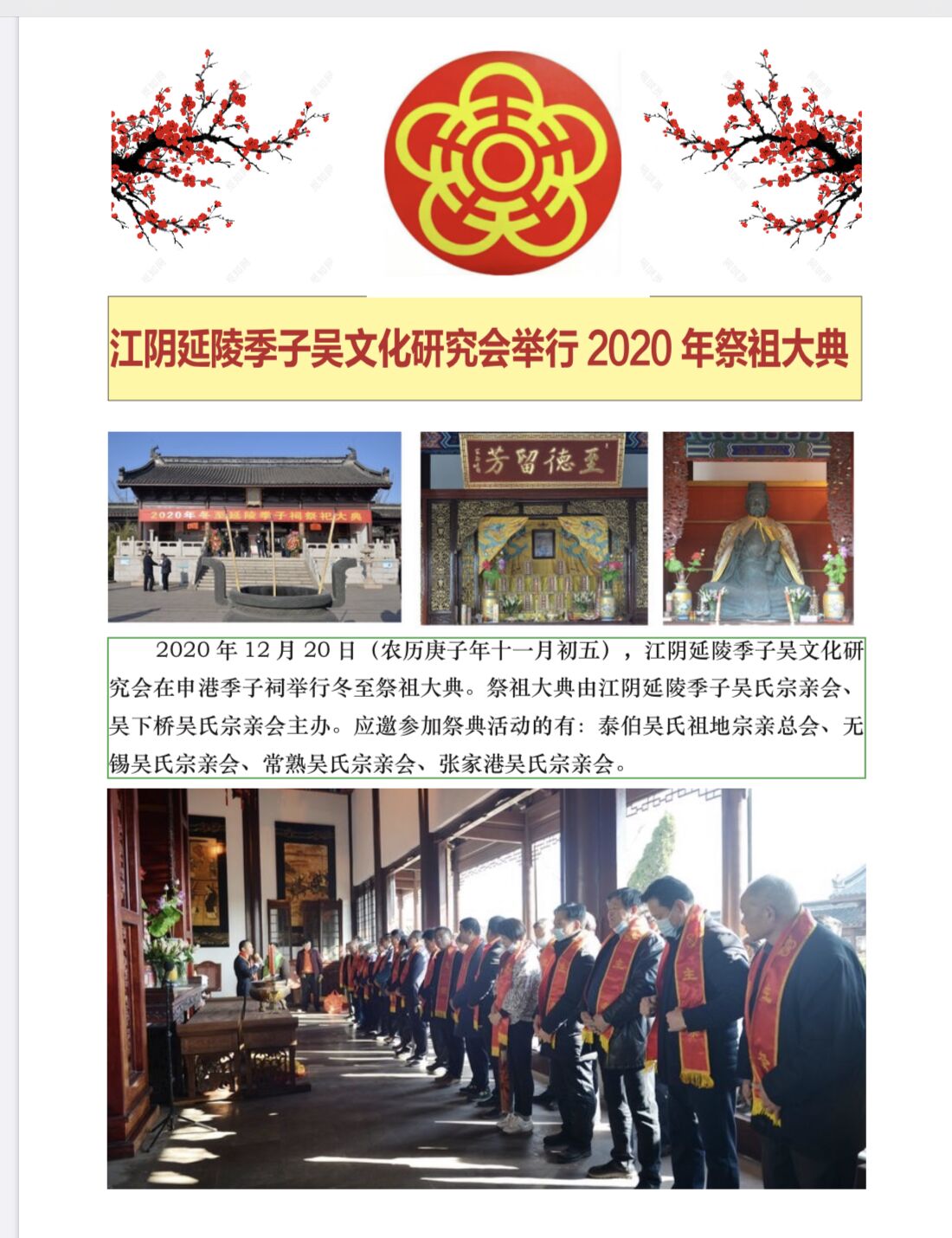 江阴延陵季子吴文化研究会举行2020年祭祖大典