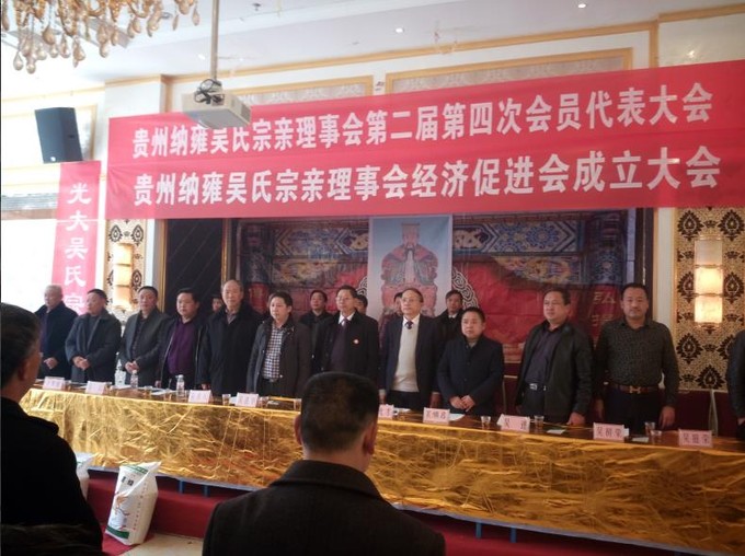 宗亲们,贵州纳雍吴氏宗亲理事会开展宗亲联谊活动,目的是为了构建家族和谐,想宗亲之所想,急宗亲之所需,有事相帮、有难相助,为我族人排忧解难,办实事、办好事。一年来,理事会虽然做了一些具体事情,但严格说起来还是微不足道的,还需继续努力。今年开始,理事会的工作还需更新转重,重点是搭建商务平台,提供商品产供俏的信息服务,为产品找出路,为闲散人员找出路,为新办企业找合作,做到人人都动起来,人人都有事做,利用家族的力量,促进吴氏族中经济发展,发挥贵州纳雍吴氏宗亲理事会的造血功能,实现大众创业、万众创新、互利互盈、同奔小康路,共圆致富梦。经济促进的具体方案,一会,请昌云秘书长详细的讲解。