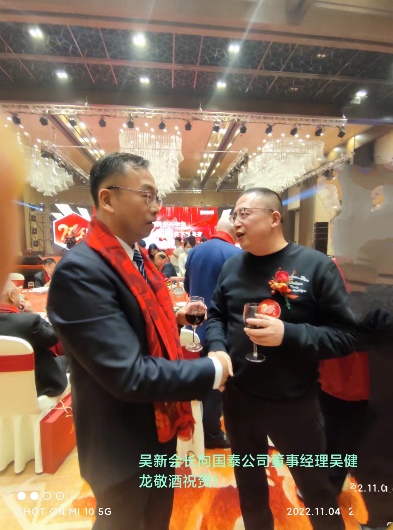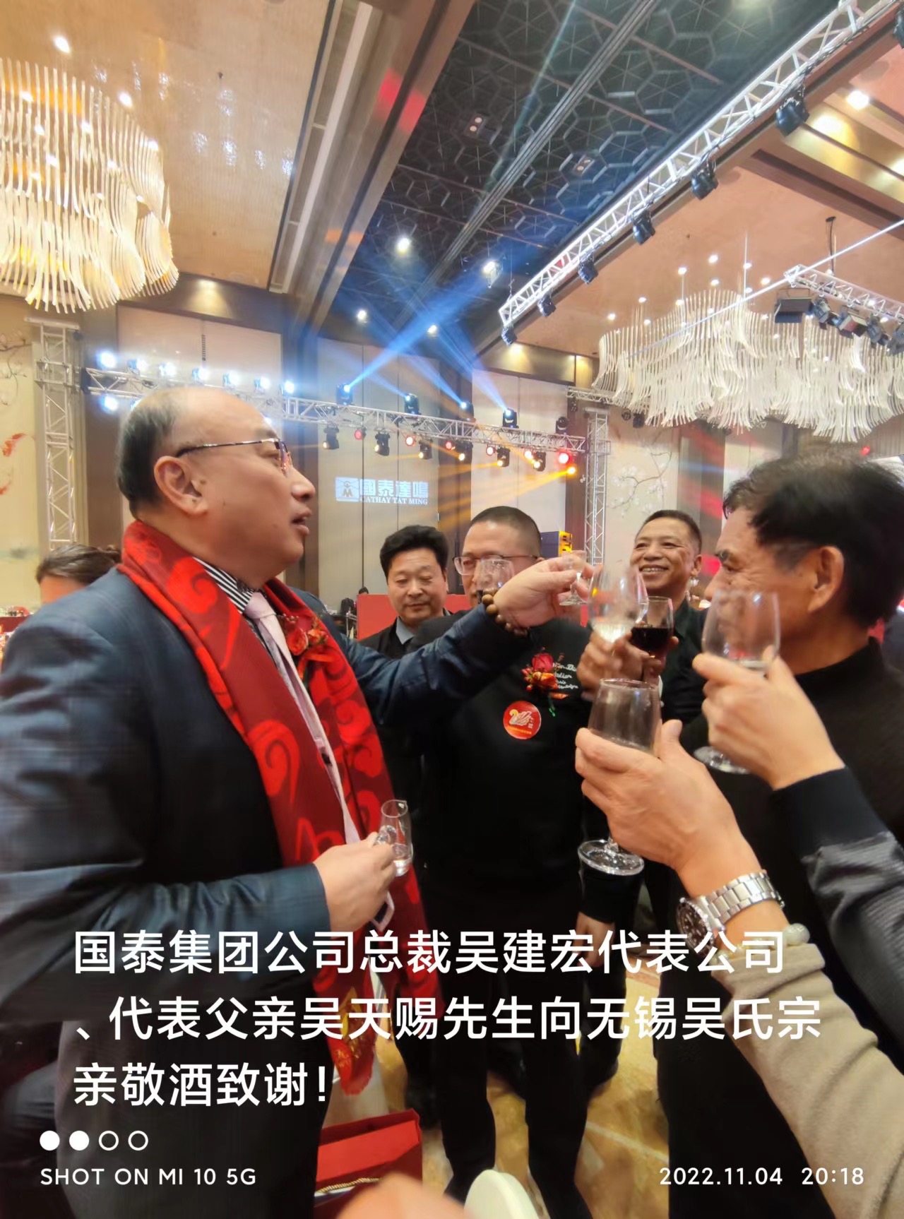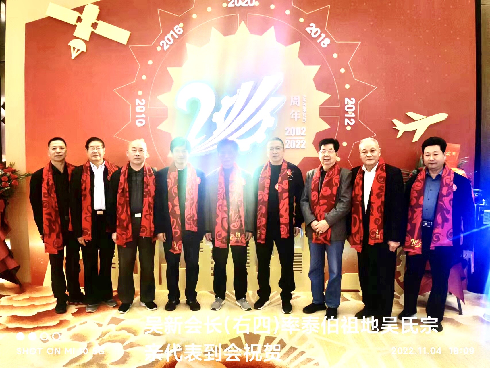 在无锡国泰20周年庆典仪式上,泰伯祖地吴氏总会会长吴新率十多位宗亲代表到场祝贺,热烈祝贺国泰公司跨上新征程,再展新鸿图;此时此刻,特别掛念可敬可亲的吴天赐先生,特请总裁吴健宏及弟弟健龙先生代向吴天赐先生致以祖地宗亲对他的崇高敬意和诚挚的祝福!