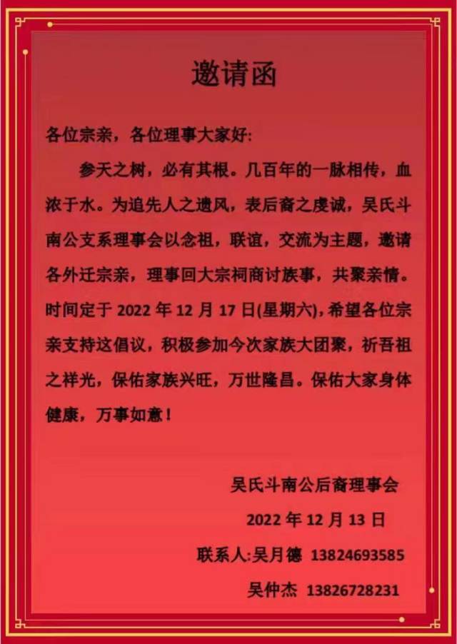 吴氏《斗南公》大宗祠理事会