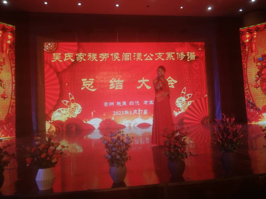 2023年1月27日(农历正月初六),吴世万公后裔施秉县白洗吴氏老寨修谱总结会议在施秉县青少年活动中心隆重举行。参会人员有来自天柱远口、湖南新晃、贵阳、凯里、贞丰、铜仁、岺巩、镇远等地的宗亲代表及嘉宾代表和施秉族人一千人左右,共同分享修谱成功的喜悦。吴经周(远口吴氏总祠常务副会长、远口泰伯书院常务副院长),吴得玉(远口吴氏总祠顾问、远口泰伯书院顾问),吴礼宏(远口吴氏总祠常务秘书长、远口泰伯书院秘书长)等宗亲代表远口吴氏总祠和远口泰伯书院参加此次修谱总结盛会,吴经周常务副会长代表远口吴氏总祠和远口泰伯书院在会上致辞,各支系及嘉宾代表都在会上作了发言。