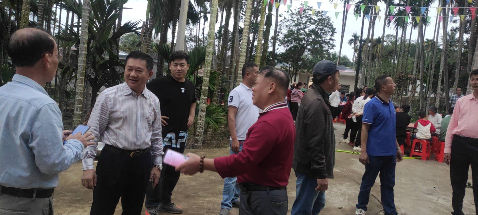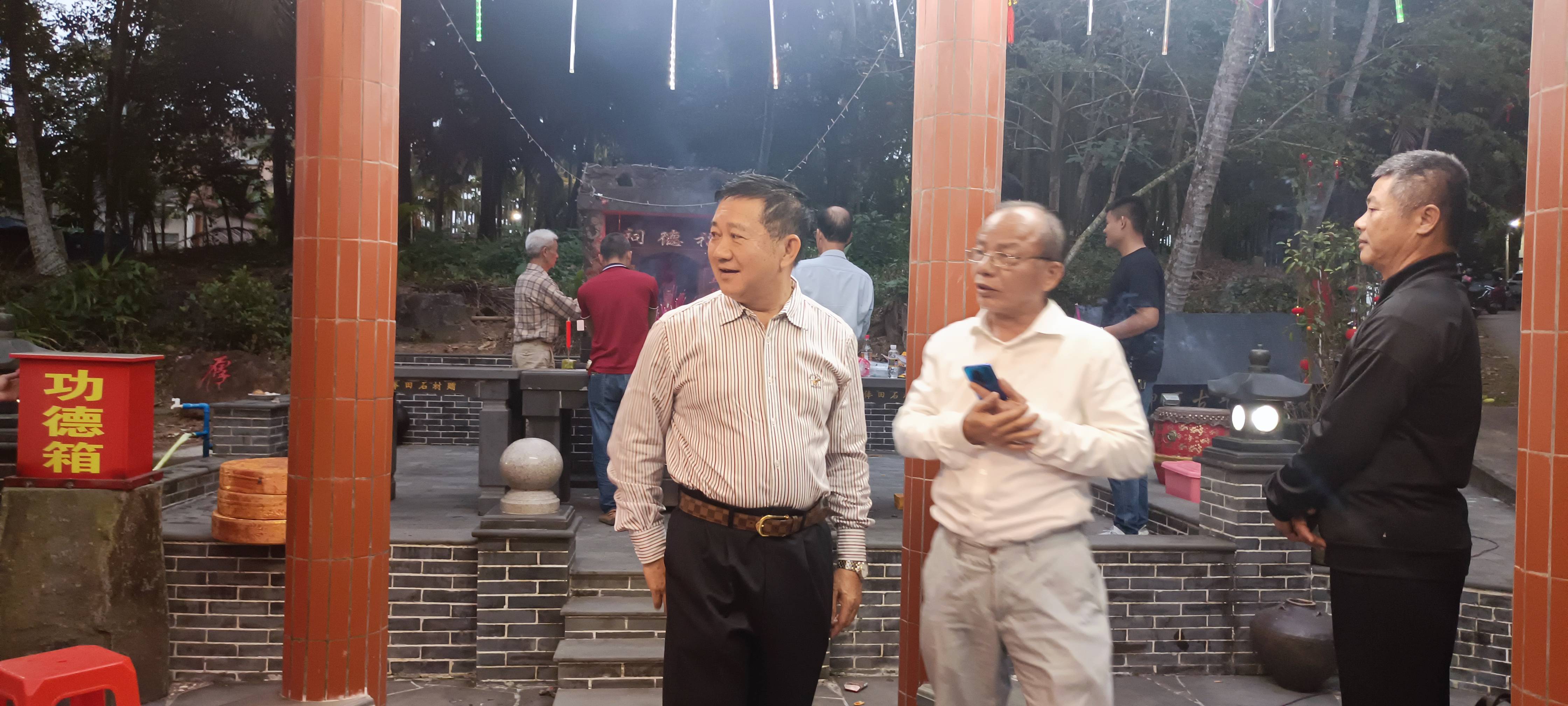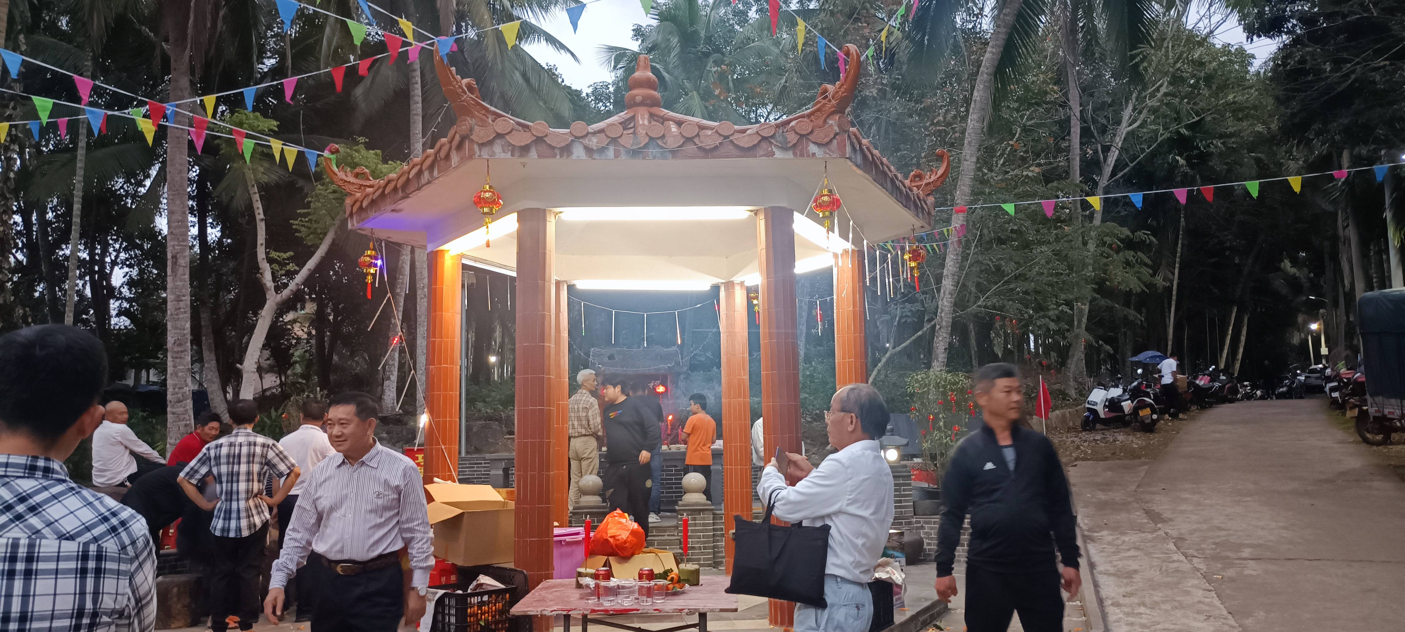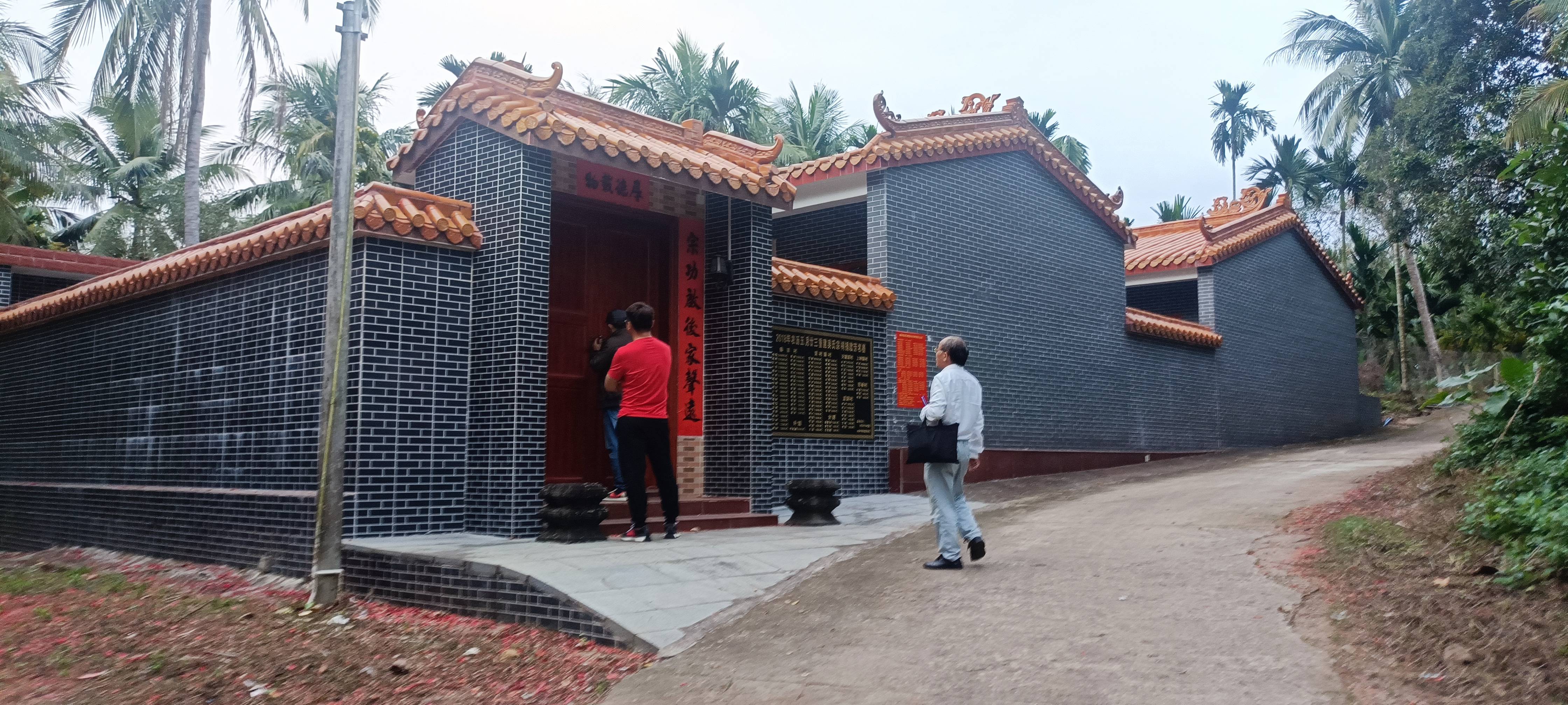 琼海泰伯书院(筹)与嘉积吴氏分会,今晚元宵节,天上月亮,人间团圆,烟火向星辰,宵圆人更圆,幸福癸卯年。傍晚六时半许,首先参观俸田吴氏宗祠建设。俸田吴氏宗祠于前年建设落成,共二进、东横屋文化走廊和前面围墙环抱式岭南派风格建筑,占地面积三百多平方米。周围环境绿树蓊葱,背后拱形山脉逶迤环抱,前庭广阔,畴野碧秀,一马平川,长乐流远。