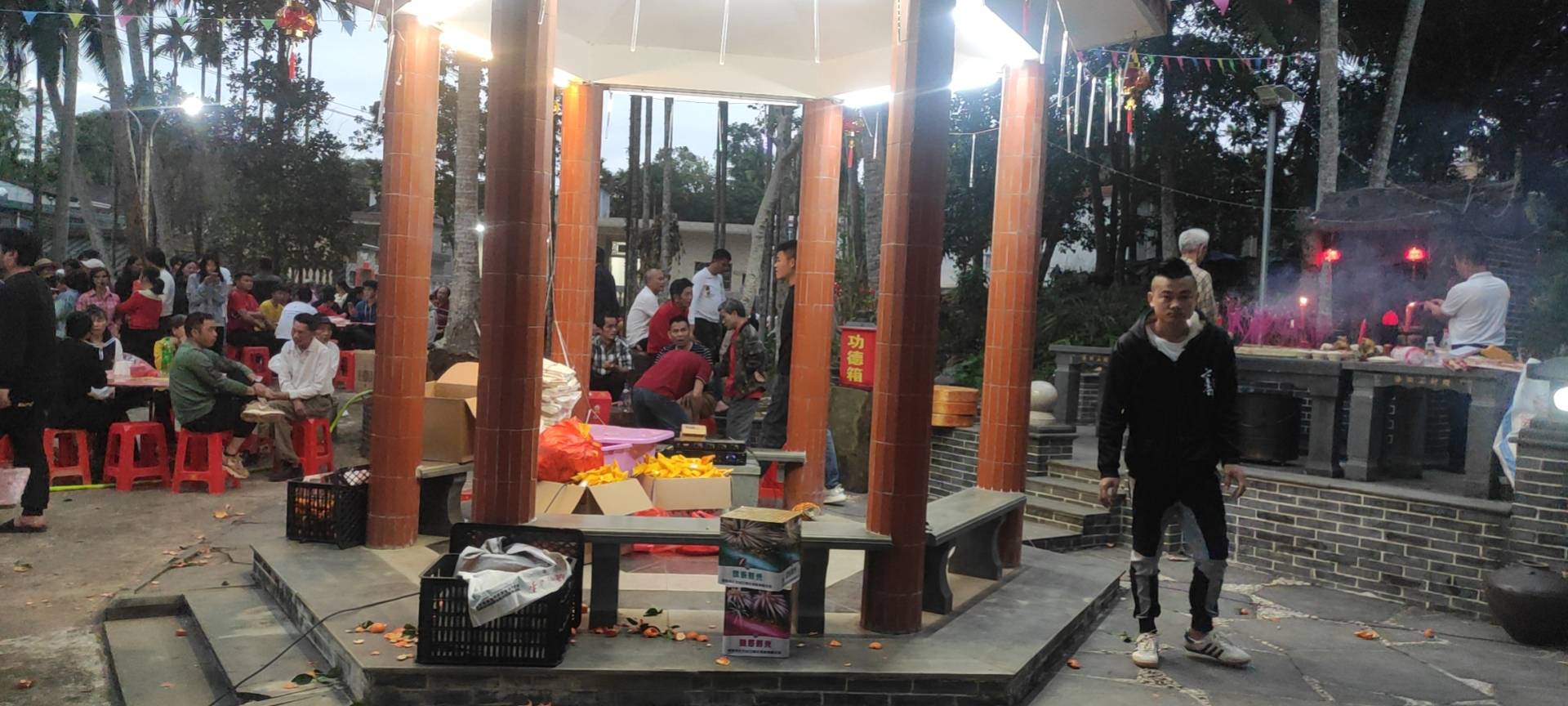 俸田村正德祠前方槟榔谷间的百年古井,人们喜欢称旺贤井,是俸田村民众生活饮用古井,始建于道光五年(1825年),哺养滋育代代子孙。俸田村民众每年元宵节春聚谊亲旺乡睦邻活动,祭拜祖祠、正德祠后,自然溯源旺贤古井,旺贤古井,已成为俸田村民众永恒的历史文化传承传播。饮水思源,不忘根,不忘本,牢记祖先的优良传统和光辉史迹。今癸卯元宵节月晚,俸田村民众喜聚在旺贤古井旁,喜聚在正德祠前庭,喜庆兔年元宵节。俸田村贤、嘉积吴氏分会会长吴宏雄以及宗贤吴冲、吴宏儒、吴宏蚊、吴建春等,牵头组织今癸卯年元宵节民众春聚谊亲旺乡睦邻乡土文化活动,大大的丰富了乡村民众的文化生活。其实,这样的元宵节春聚旺乡睦邻乡土文化活动,每年都在坚持,他们是乡村精神文明建设的辛勤劳动者,功德无量,民众称赞。