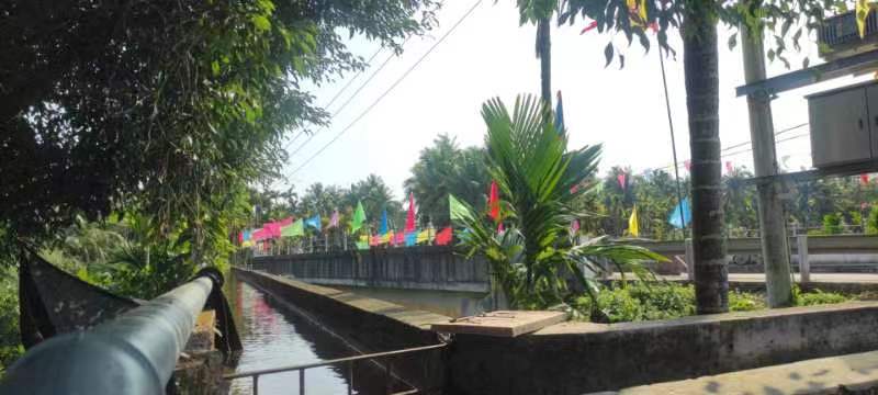 加德沟村,过去道路阻隔闭塞,人们孤陋寡闻,加德沟桥是简木桥,每发洪水,桥被卷冲走,农户作业与孩子上学,困难重重,人们形象说,加德沟是一道 “天险",加德沟桥是 “天险" 里的一道 ”隘口“,村民生产生活与之息息相关,人们常常望沟生叹。今天,天险变坦途,隘口成大道,宏伟壮观的加德沟现代化大桥,连接南俸农场和屯昌外界四面八方各地。在下朗委书记王清宁的帶领下,水泥硬板化环村路、村间路、农田灌溉现代化设施U型槽水渠等,和生产道路纵横交错,逶迤飘银,与匠心设计建造气派轩昂的加德沟村路牌标志、村西侧常青碧绿的 赤面岭等山脉,环相呼应,构成一幅美丽的乡村画卷,一道风光旖旎的乡村风景线。