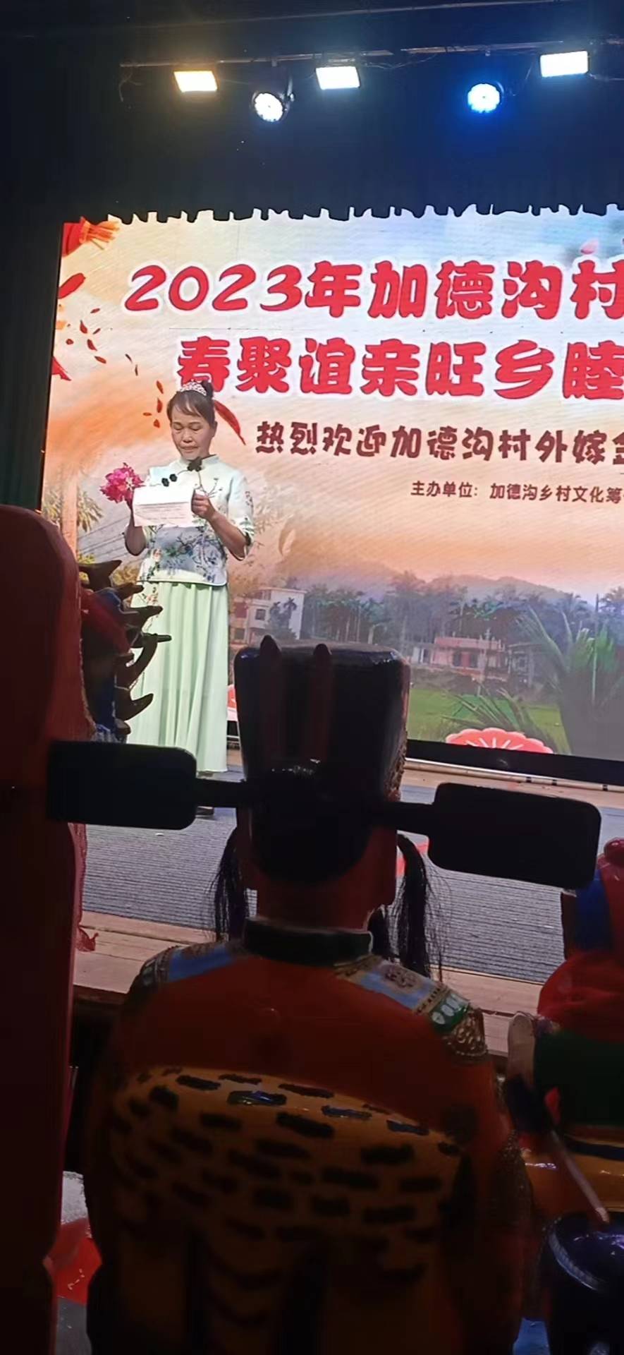 春回大地,万象更新。党的二十大东风浩荡,今年是新的一百年砥砺奋进、开启新征程开局之年,我们意气风发,我们豪情满怀,紧跟新时代,绘画新蓝图。辞寅迎卯,福启新岁。虎笑疫情归山去,玉兔瑞气秀三春。加德沟村迎来百年巨变的春天,春暖花开,春意盎然,处处回春绿昌,村民幸福安康庆丰年。加德沟村民,千年望族,世代繁衍,簪缨相继,喜逢盛世,更创辉煌。加德沟长乐流远,双喜临门幸福来。今天,加德沟村迎来百年不遇的优秀传统文化重大活动一一一 外嫁女回娘家春聚谊亲旺乡睦邻活动。参天之木,必有其根,环山之水,必有其源。今晚的外嫁女回娘家乡土文化活动,是加德沟村外嫁女对家乡根的眷恋,对乡土滋润养育之恩的感谢感恩和报答,对乡亲父老和兄弟姐妹的深情表白……