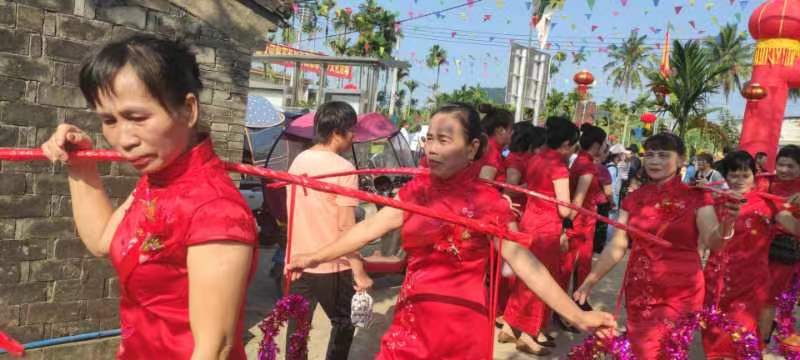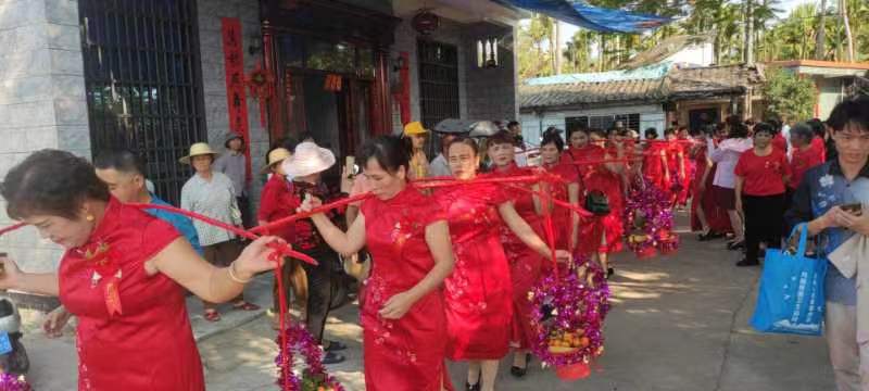 2023年琼海市石壁镇下朗村委会加德沟首届外嫁女回娘家春聚谊亲旺乡睦邻乡村文化活动,正月廿二(2月12日),外嫁女们走村串户拜年恳亲睦邻谊情交流活动。外嫁女们留恋家乡的山山水水,一草一木,眷恋家乡的父老乡亲和兄弟姐妹们。大大地促进了广大村民的大团结,大进步,大文明,大发展。