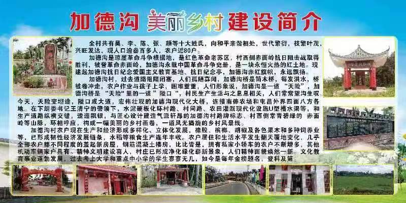 啊,赤面岭,英雄岭,啊,加德沟村,是琼崖革命斗争根据地,啊,加德沟村,是红色革命苏区,啊,加德沟村,是永载中国革命战争和琼崖革命斗争史册永恒火热的红土地。