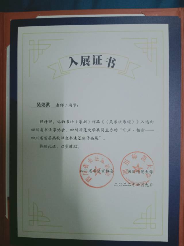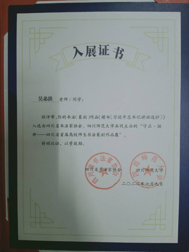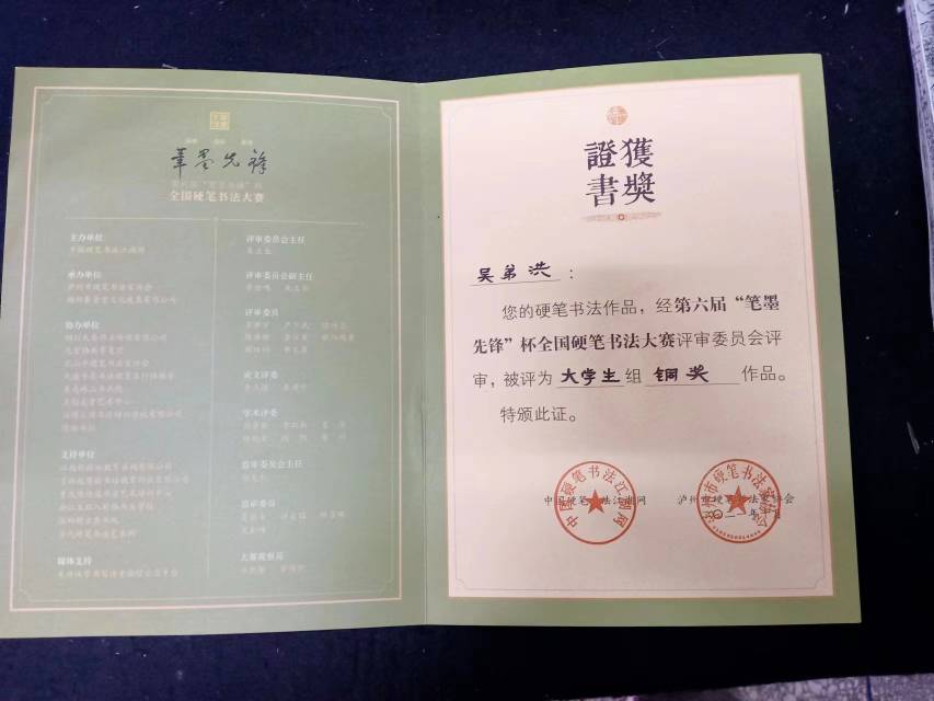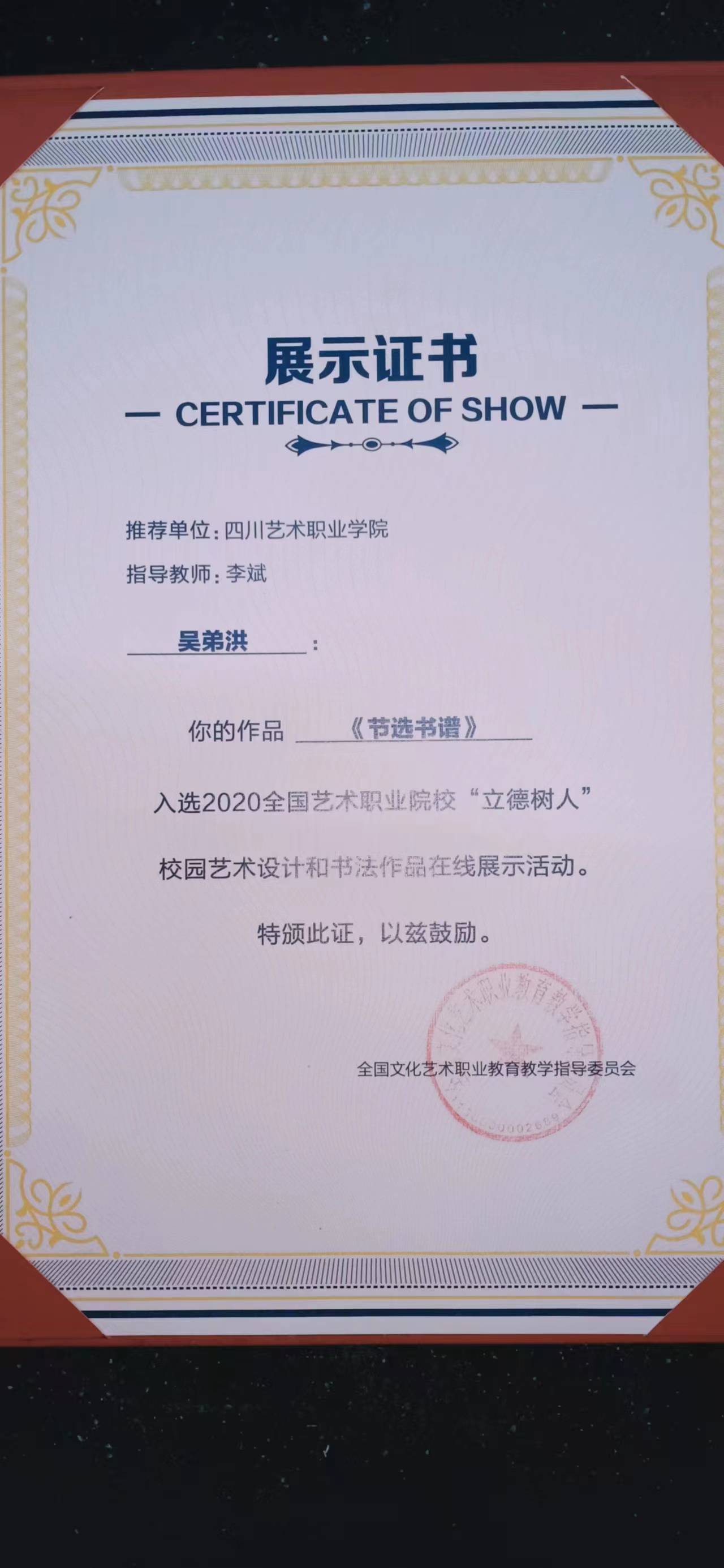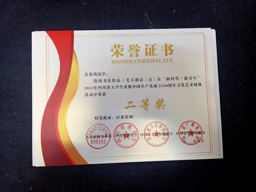 吴弟洪,斋号三燊堂,四川古蔺人,四川省硬笔书法家协会会员,自幼热爱书法艺术,大学就读四川艺术职业学院书法专业,学习书法,篆刻,国画,在大学期间从事书法教育事业,专注青少年书法教育。书法作品和篆刻作品入展四川省书法家协会和四川大学主办的《四川省首届高校师生书法篆刻作品展》,书法作品入展四川省文旅厅主办的《第二届大美四川美术作品展》,硬笔作品多次入省,市级展览。