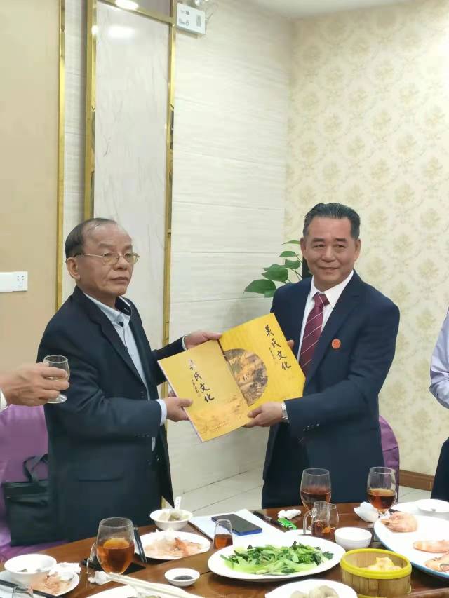海丰吴氏宗亲会第三届会长吴小锋向大家介绍宗亲工作和吴文化建设情况。海丰县人口七十多万人,吴氏人口十三万人,共十六个吴氏人口乡镇。座谈交流会中,海丰会向琼海泰伯书院赠送海丰吴氏文化资料。
