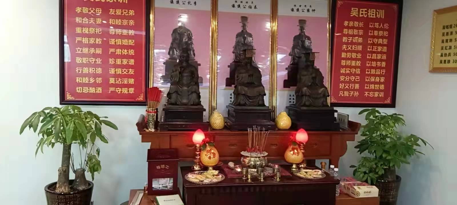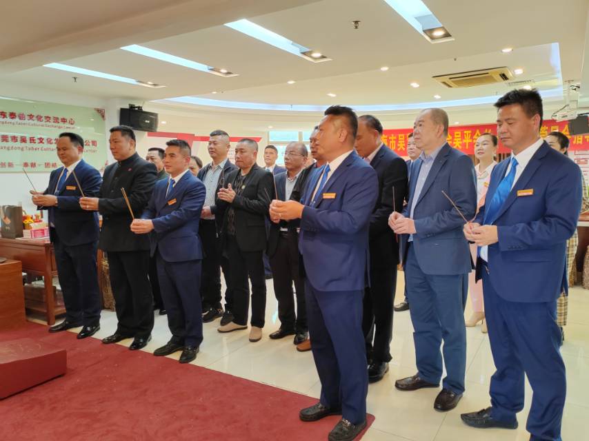 拜访学习座谈交流会,首要议程是双方大家一起恭祭祖先,莞吴会监事长吴泾生主持祭拜祖先仪式,向吴氏开姓始祖泰伯公、吴氏传世祖仲雍公、吴氏继世祖季札公敬香行礼,一躹躬,二躹躬,三躹躬,接着大家齐声诵颂吴氏祖训、吴氏家训!