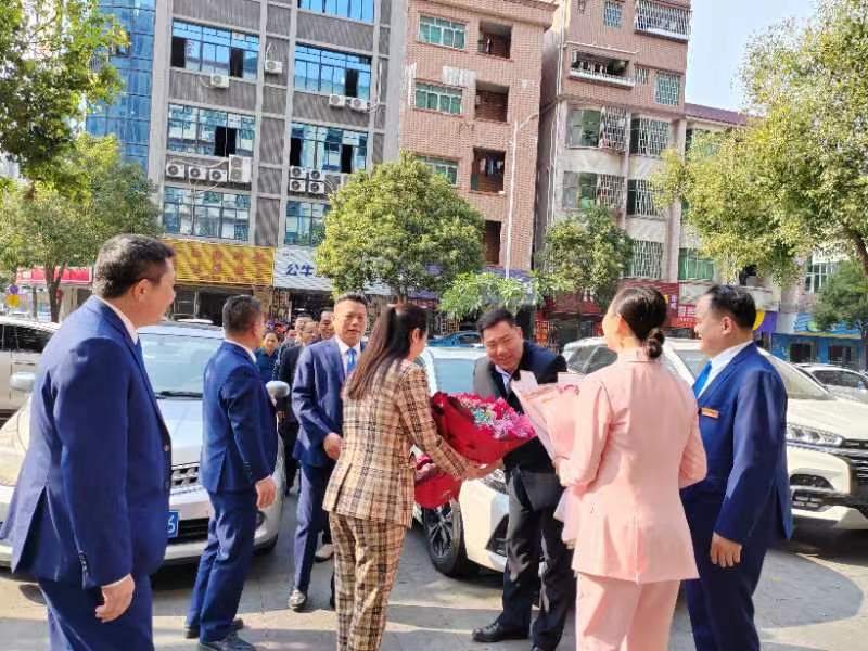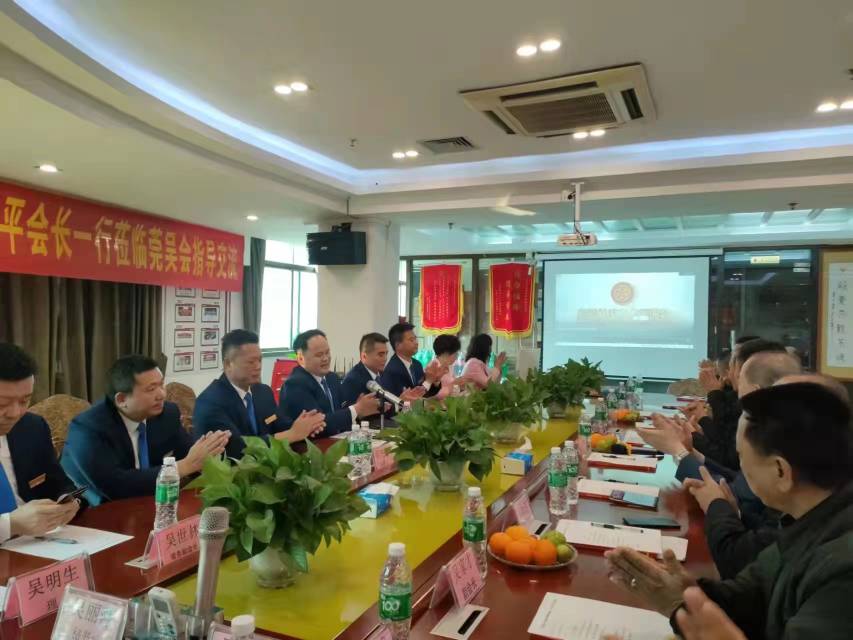 莞吴会会长吴虹渊、监事长吴泾生等携理事会大家,在会址门庭热情迎接琼海吴氏会一行的到来,迎接花束,双方握手致意,问候语,欢笑声……大家倍感亲切,亲若一家人乐融融,一起携手、兴高采烈登上楼层迈入莞吴会会厅。
