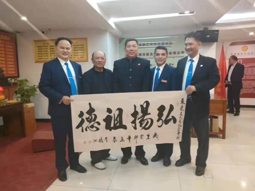 莞吴会为琼海吴氏会和泰伯书院敬赠书联:弘扬祖德、见贤思齐!勉励二地宗亲会牢记使命,不忘初心,砥砺前行,弘扬祖德,积善即福,德行天下。
