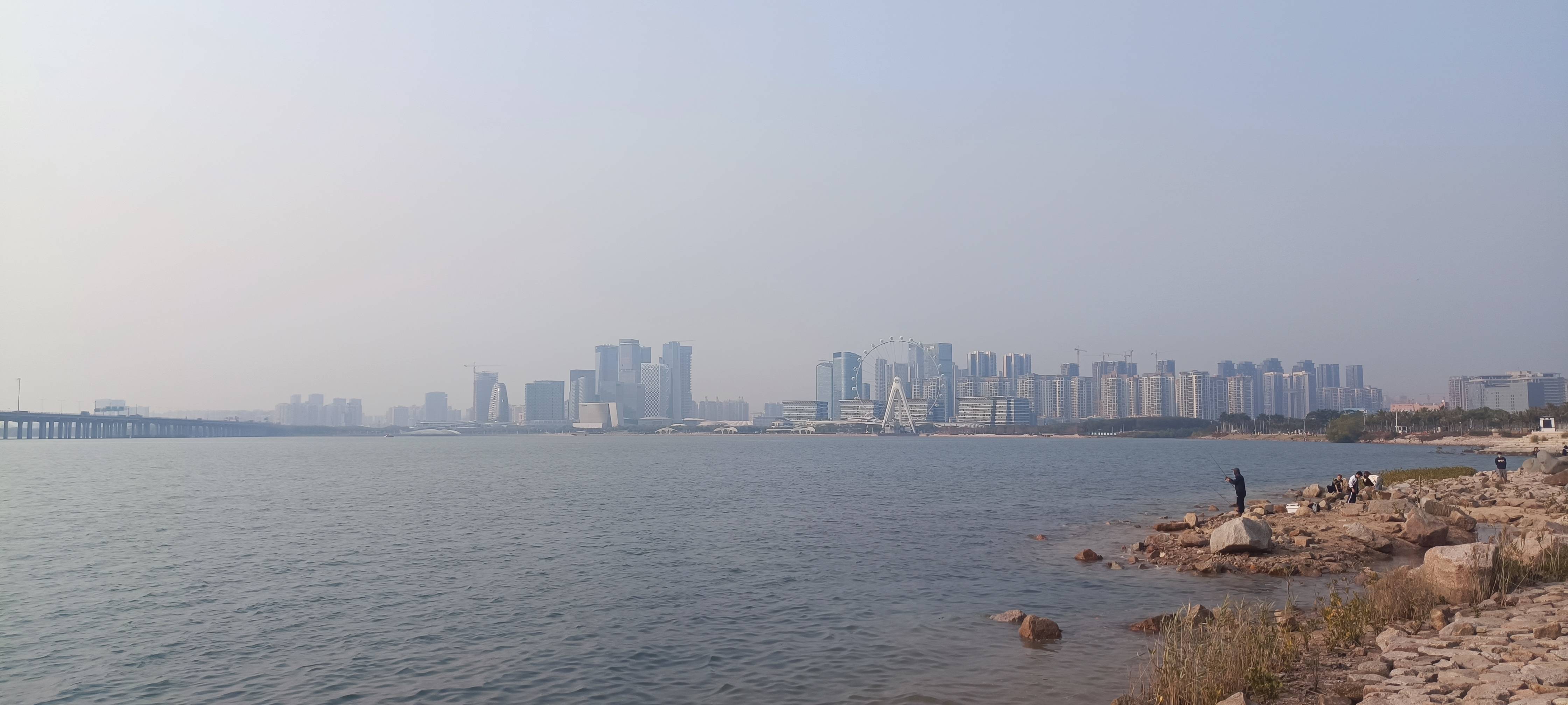 东莞至深圳时速仅六十公里程,前海,到了。美丽的广州珠江水流此处出海口流归南海,曰前海,我们面前是出口处,右远处是珠江,左远方是南海,南海继续前行是海南省海口市,继续前行是琼海博鳌亚洲论坛永久会址,前方是广深跨海大桥。