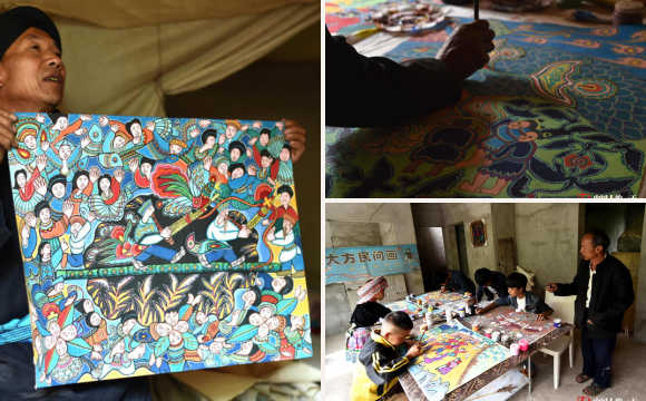 吴正奎今年60岁,是贵州大方县农民画7位传承人之一。只有小学四年级文化的他,曾多次在全国各类绘画比赛中获奖,部分画作还被我国惟一的国家级民族博物馆---中国民族文化博物馆收藏。
